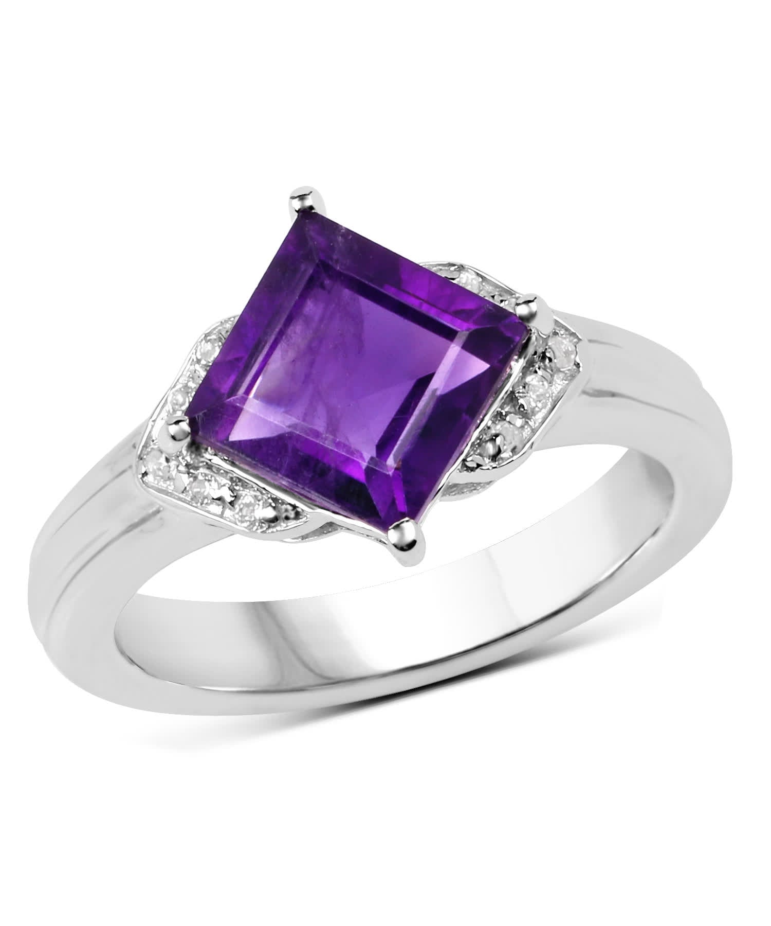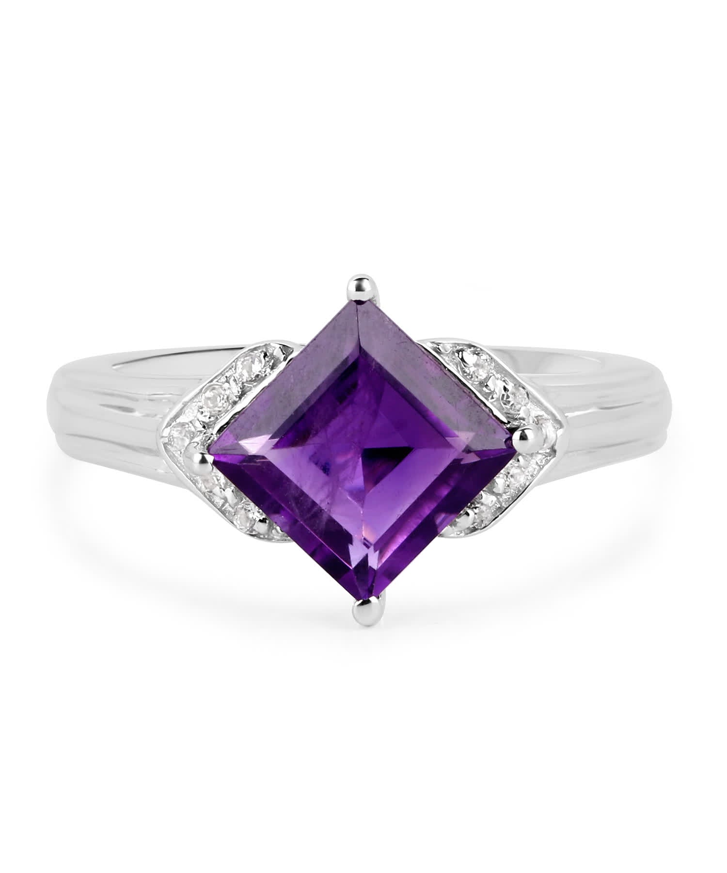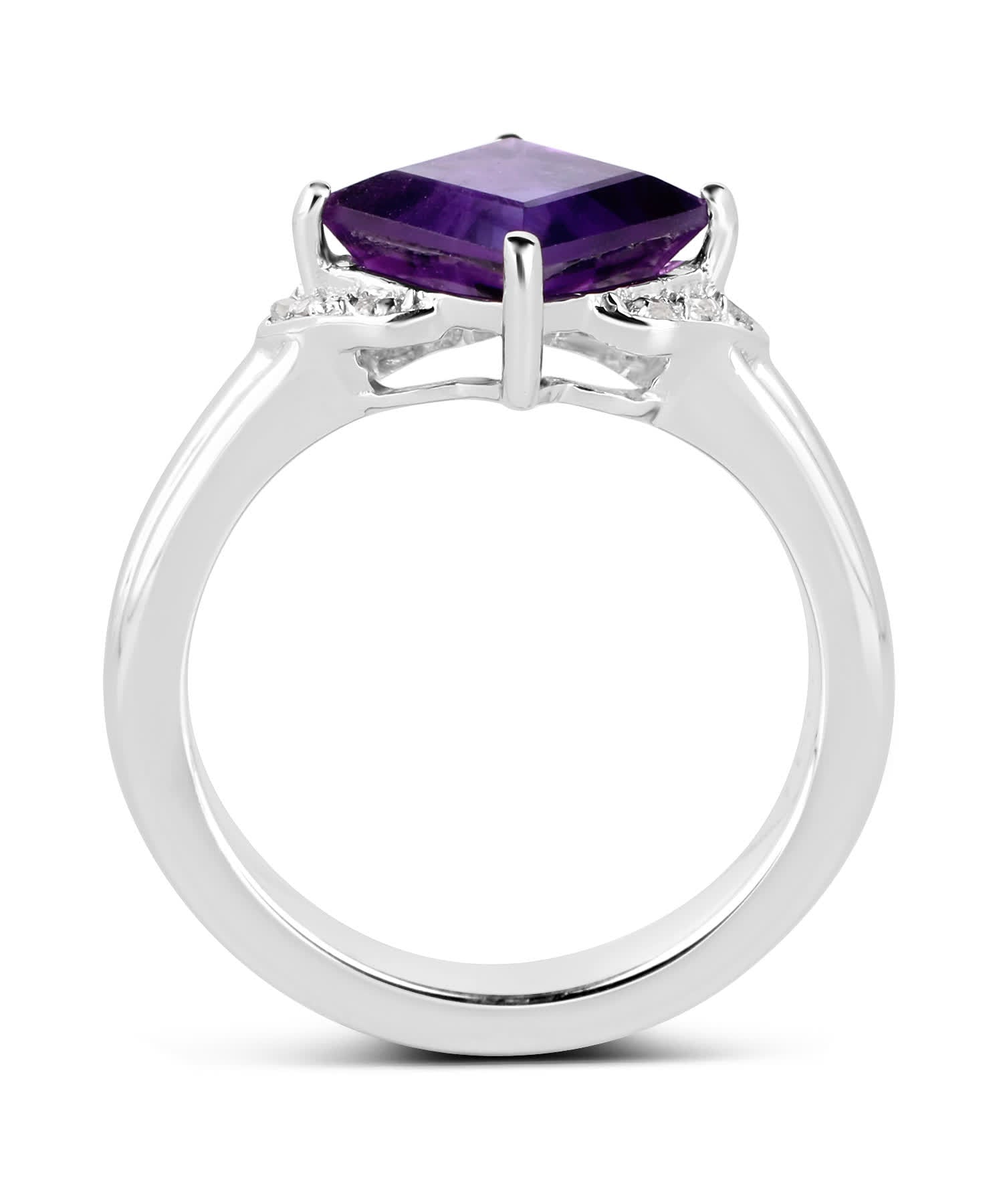 2.55 ctw Natural Amethyst and Topaz Rhodium Over 925 Sterling Silver Right Hand Ring