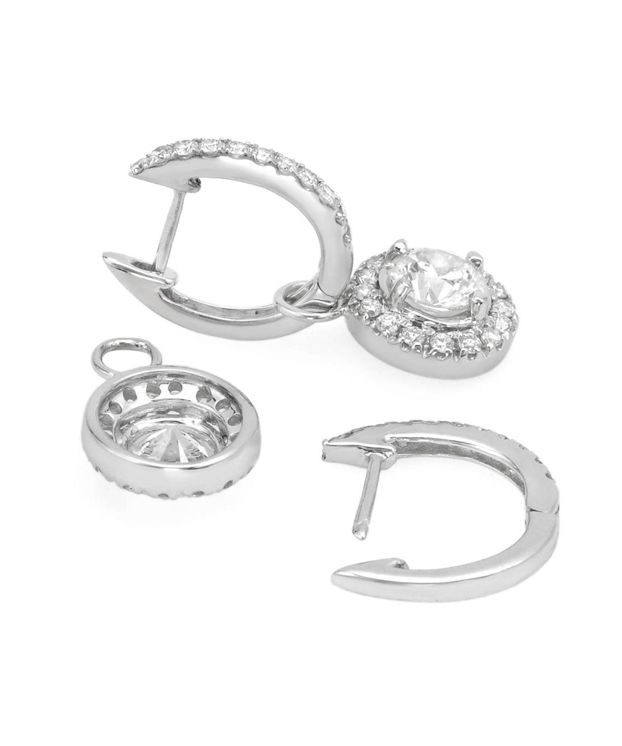 1.54 ctw Diamonds 18k White Gold Halo Dangle Earrings