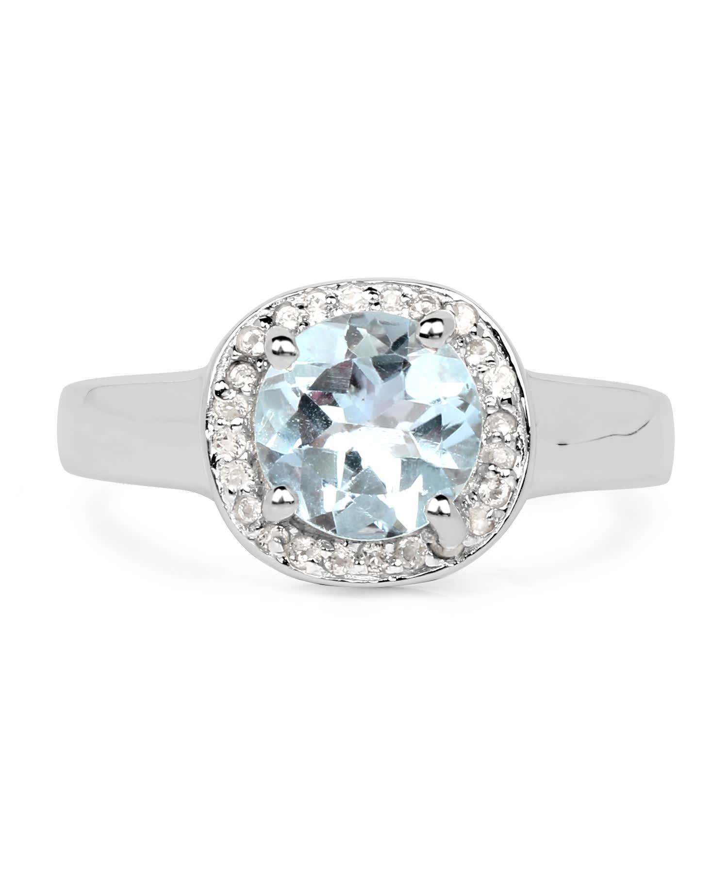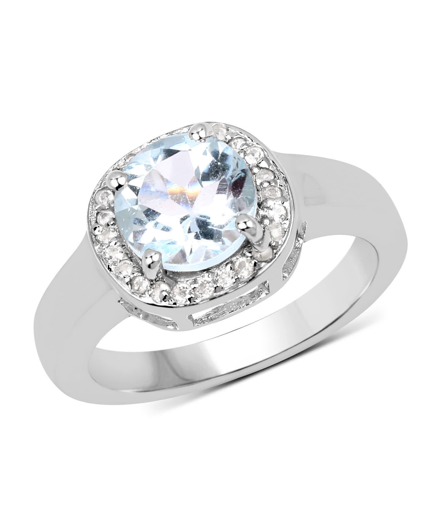 2.37 ctw Natural Sky Blue Topaz Rhodium Over 925 Sterling Silver Halo Right Hand Ring