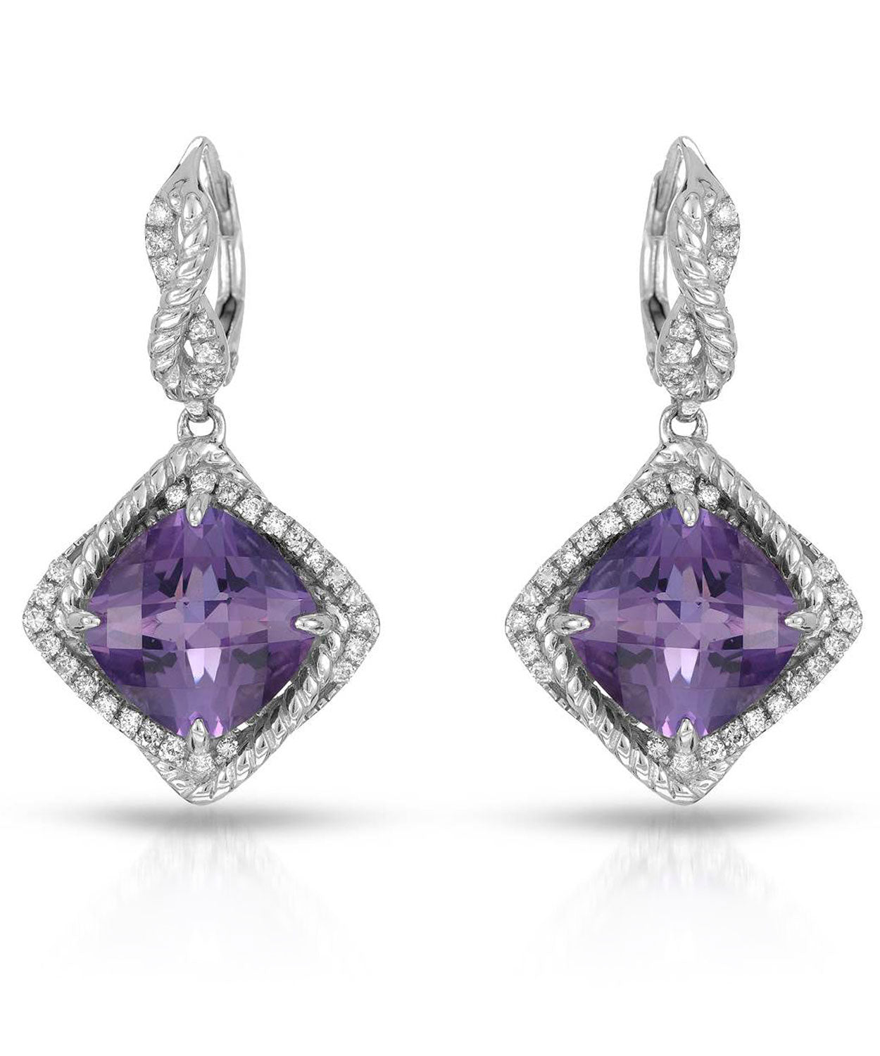 Home Earrings Colore by Simon Golub 9.35 ctw Natural Fine Amethyst and Diamond Rhodium Over 925 Sterling Silver Dangle Earrings