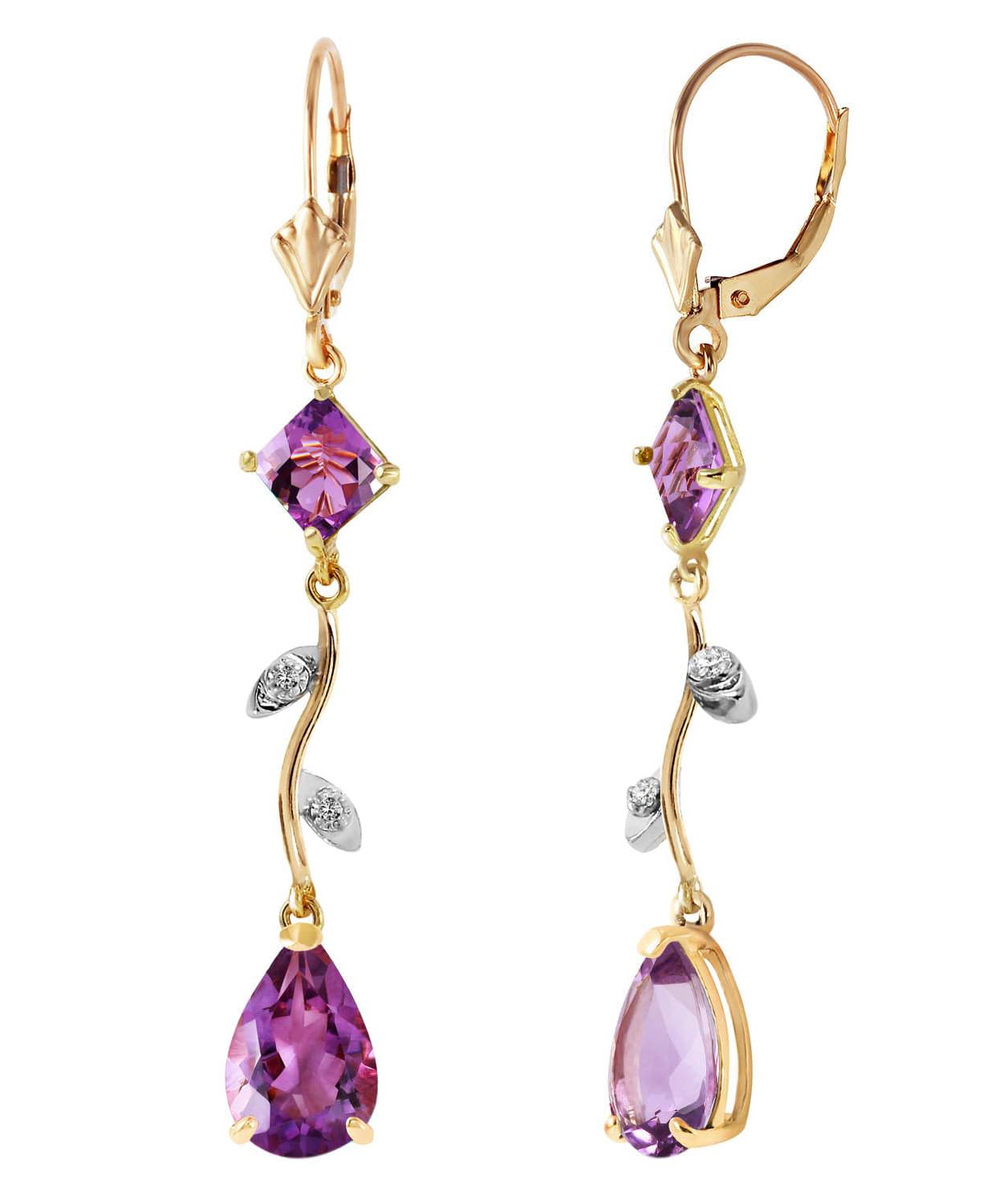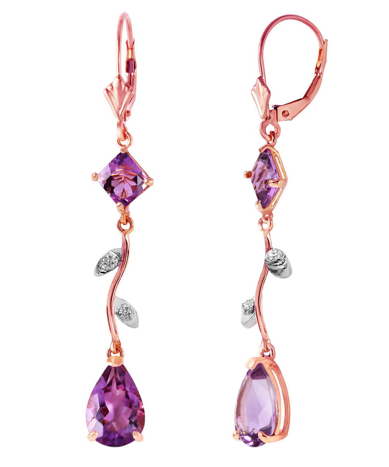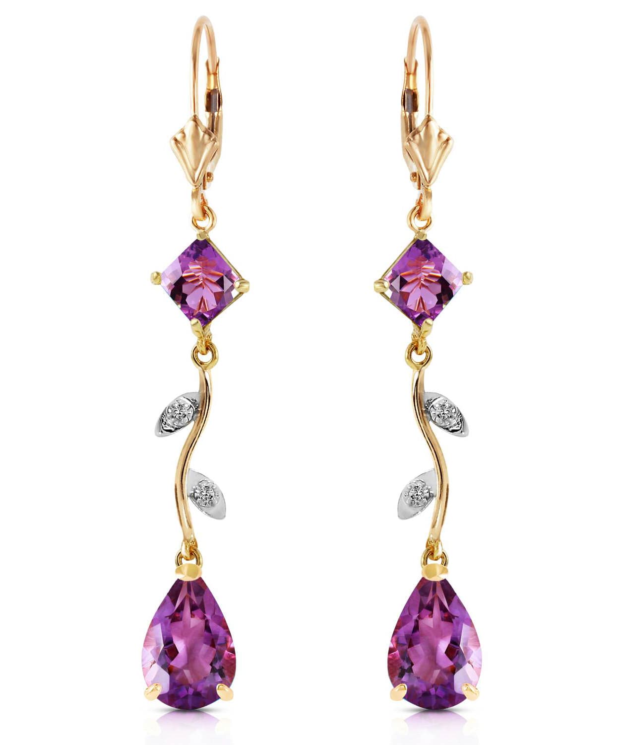 4.00 ctw Natural Amethyst and Diamond 14k Gold Flower Drop Earrings