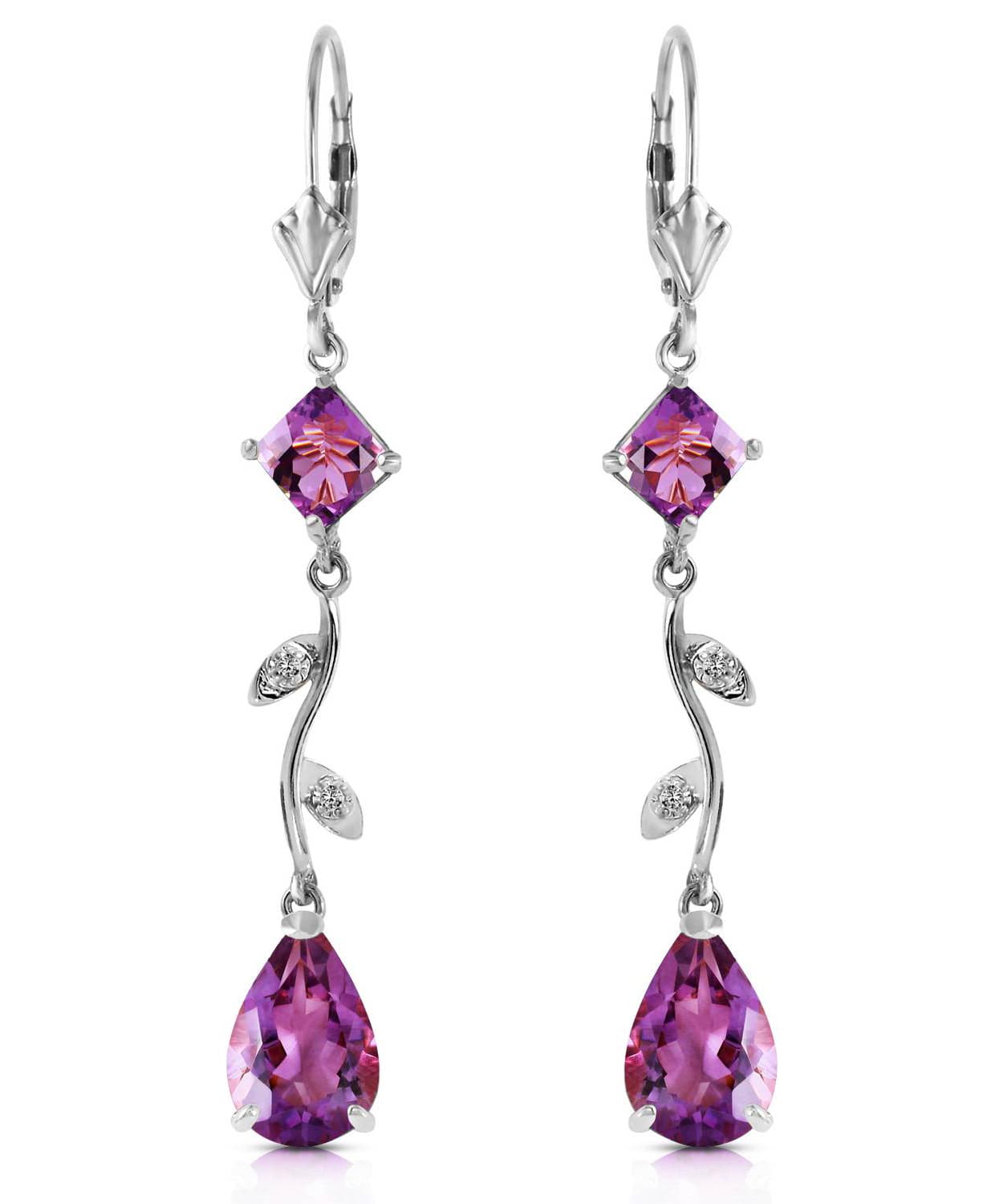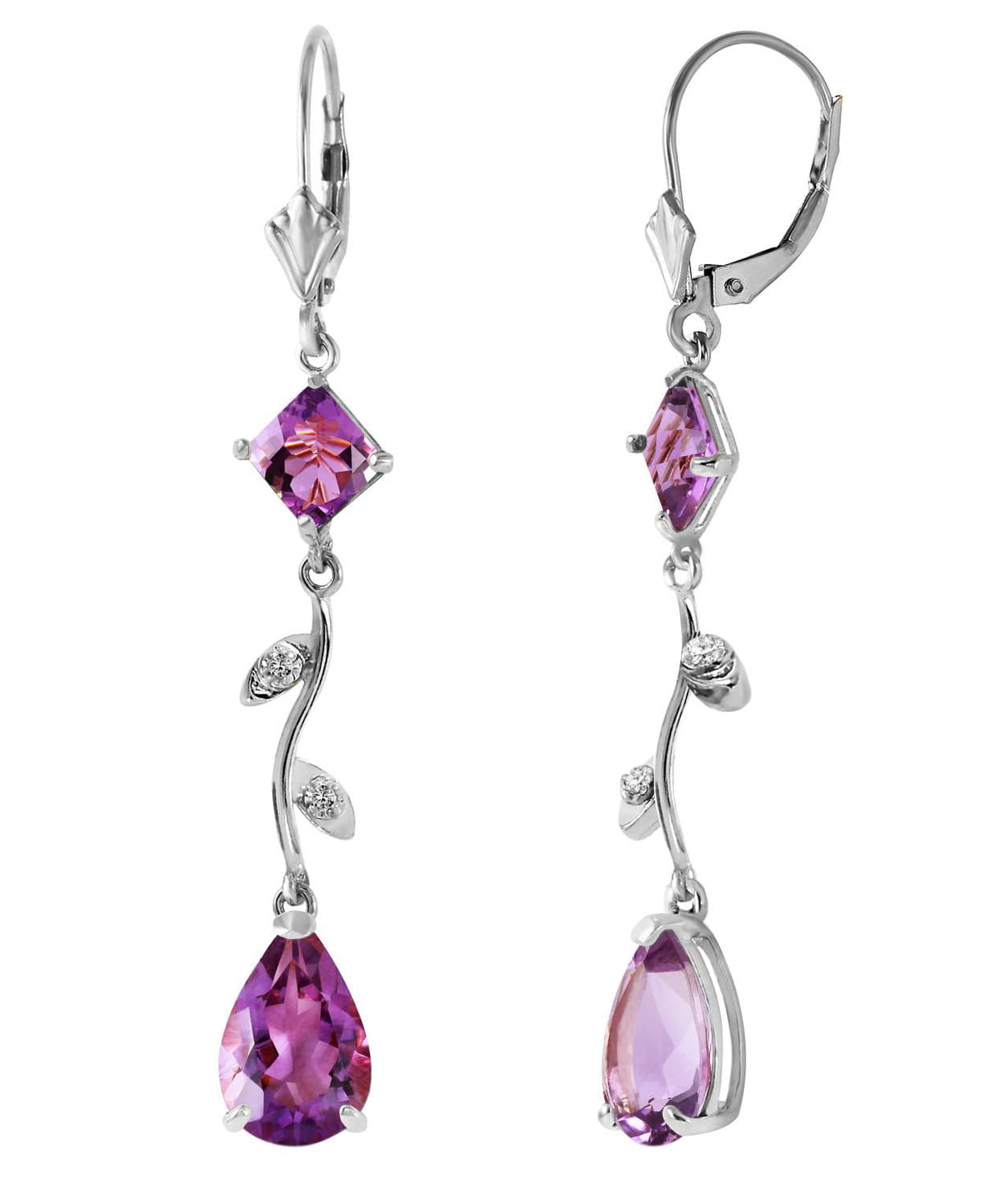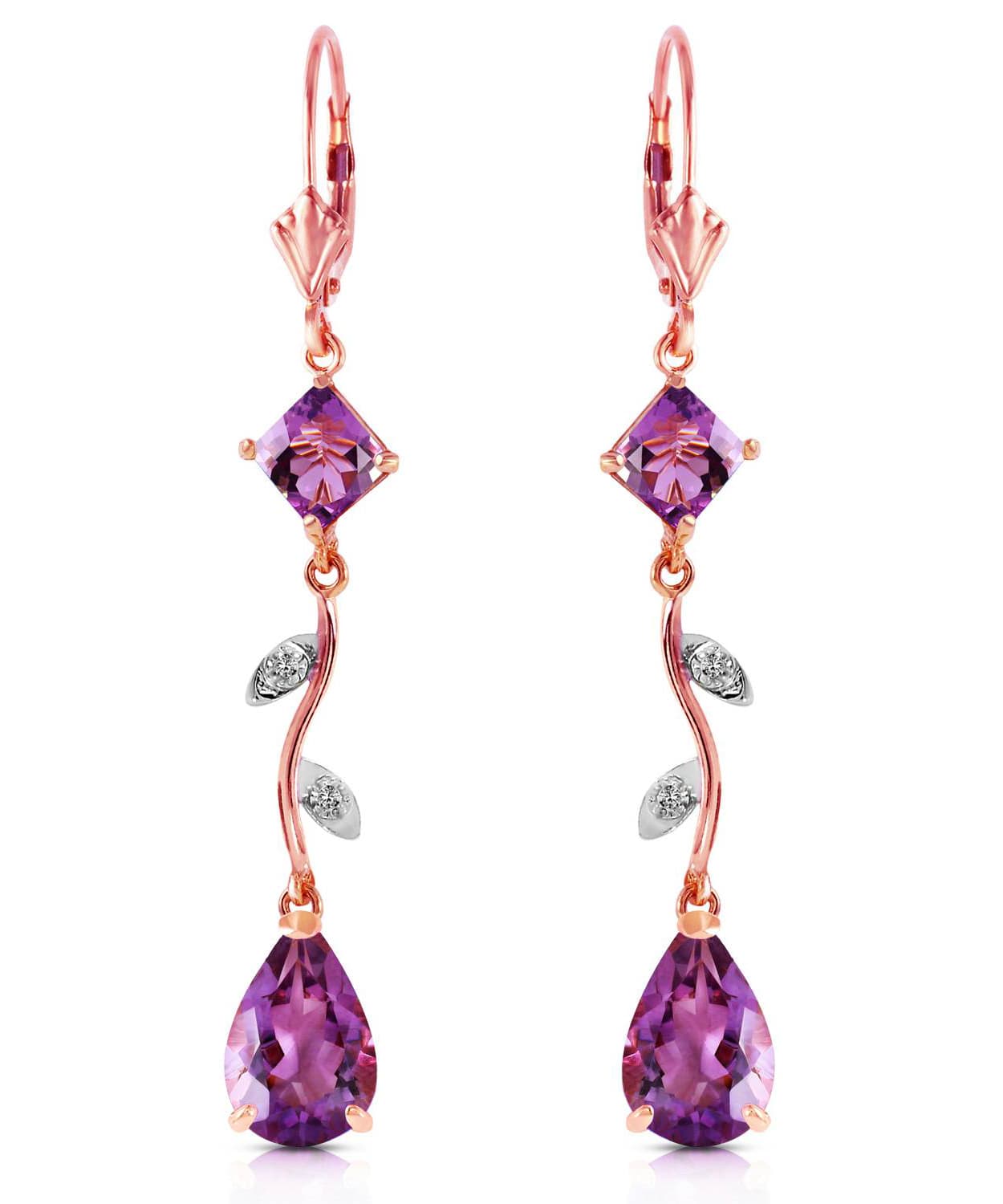 4.00 ctw Natural Amethyst and Diamond 14k Gold Flower Drop Earrings