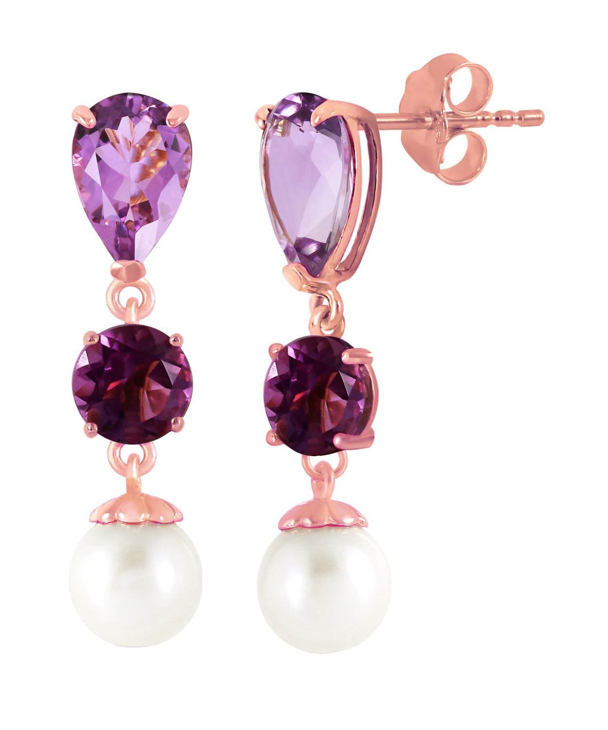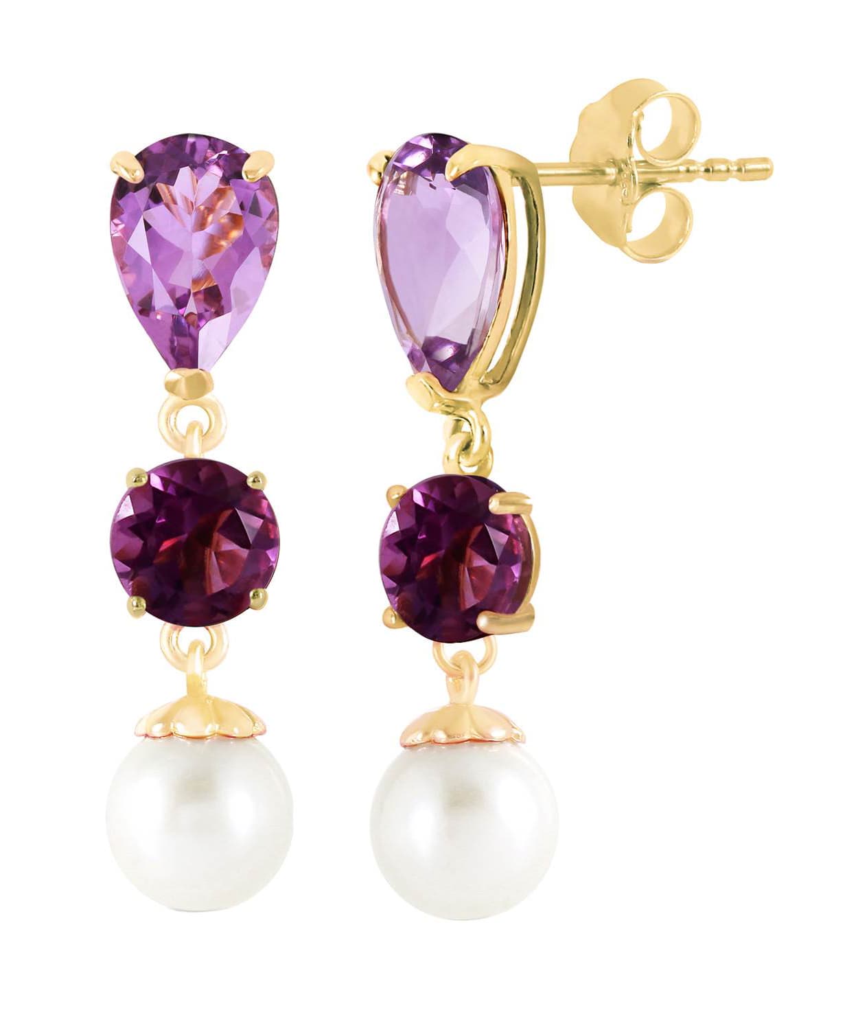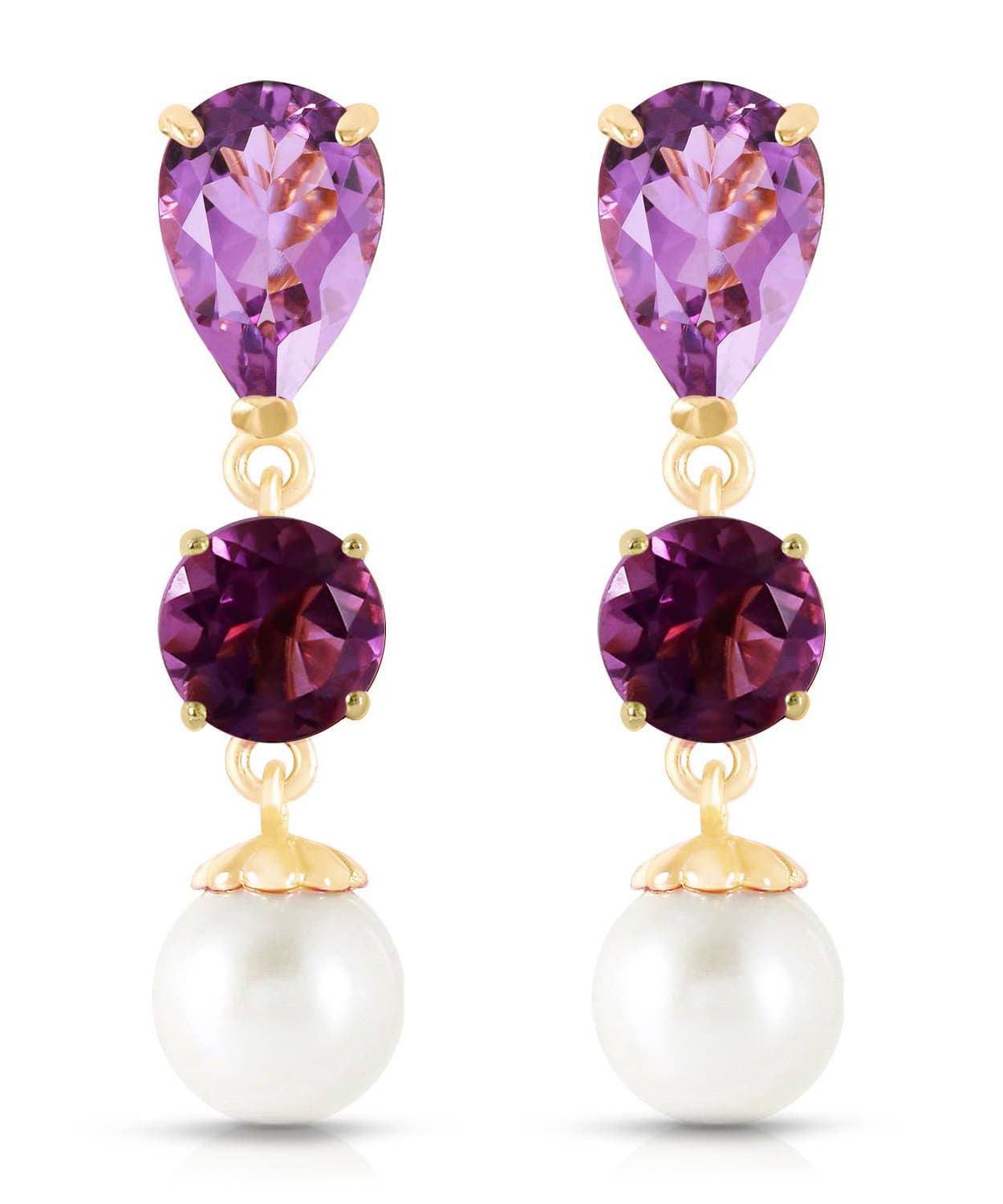 5.53 ctw Natural Amethyst and Freshwater Pearl 14k Gold Dangle Earrings