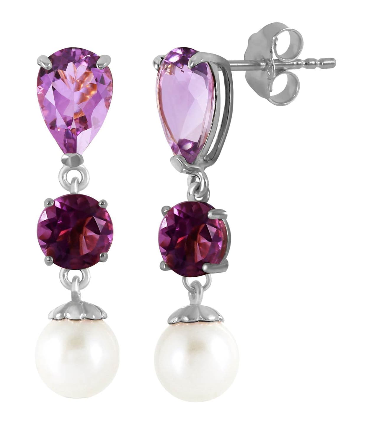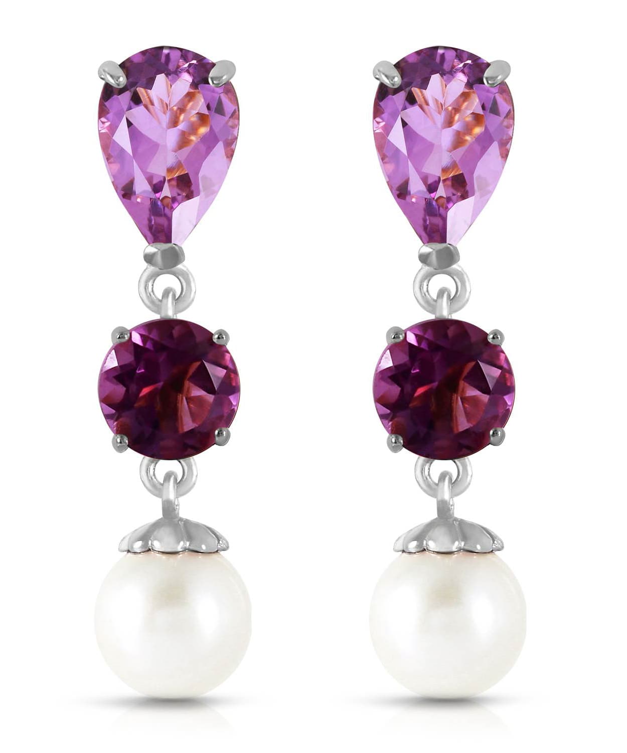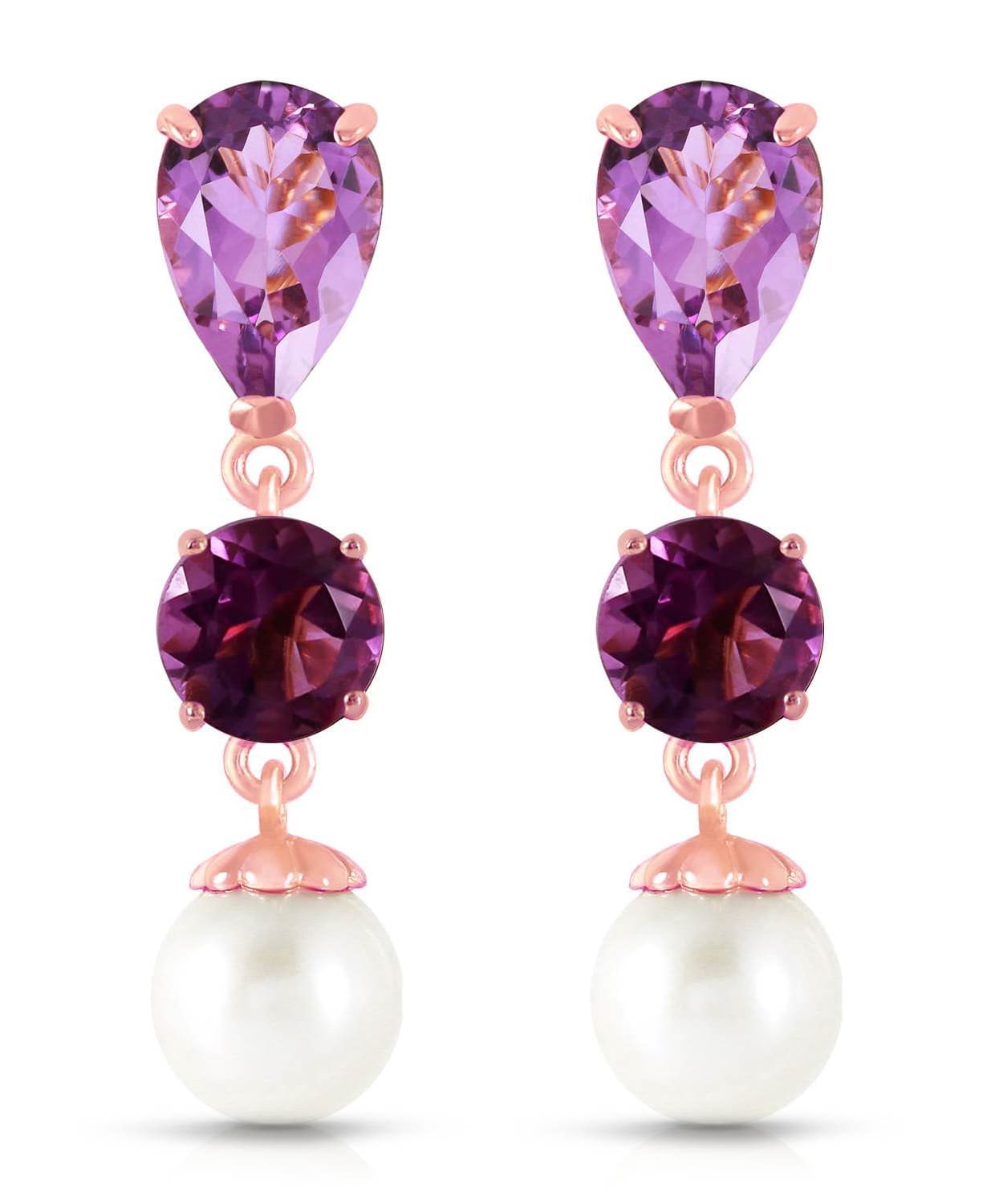 5.53 ctw Natural Amethyst and Freshwater Pearl 14k Gold Dangle Earrings
