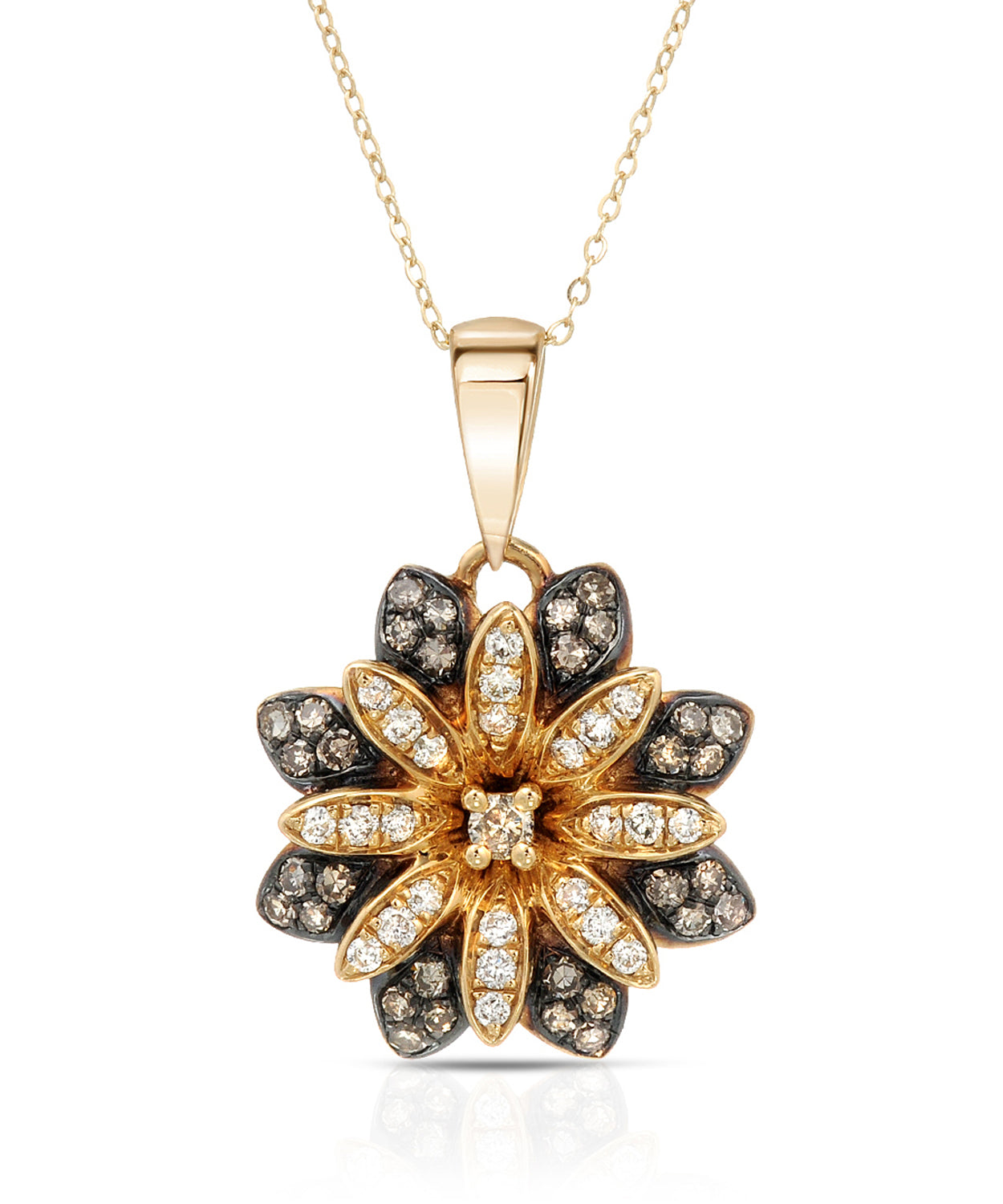 0.36 ctw Champagne and White Diamond 14k Gold Flower Pendant With Chain