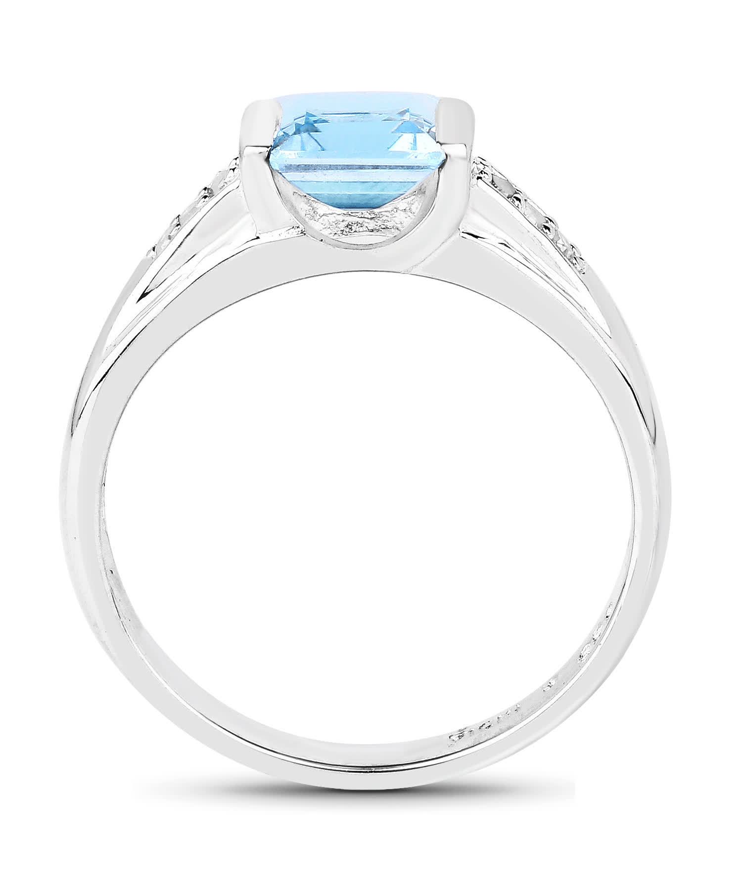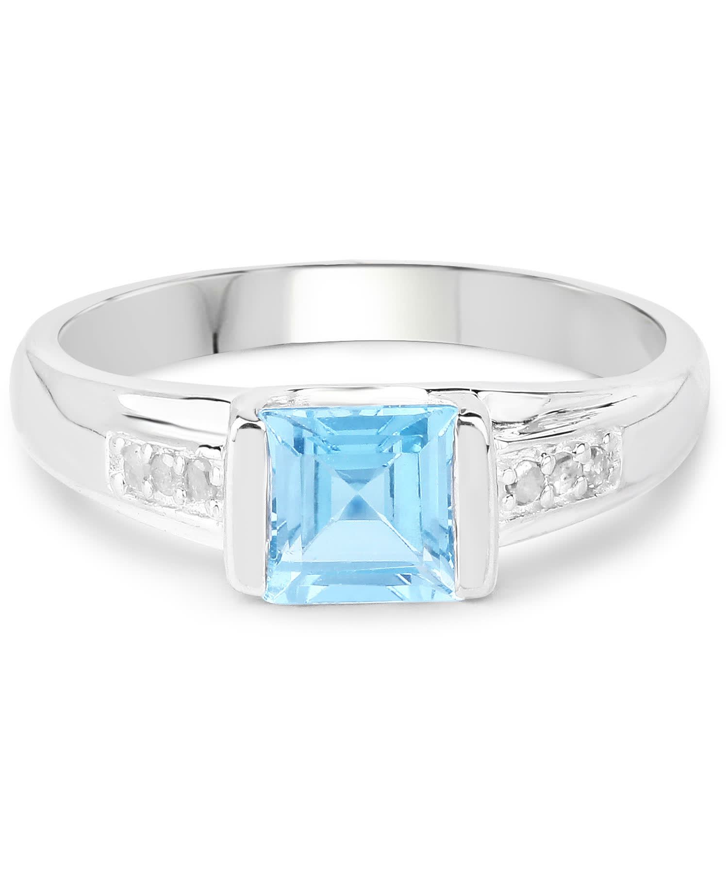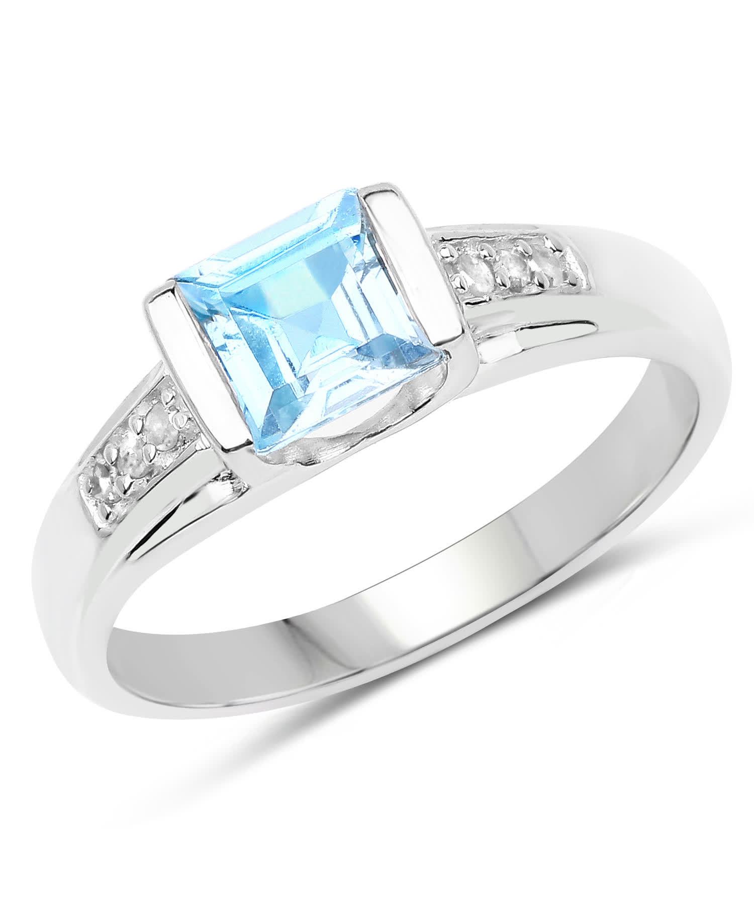 1.32 ctw Natural Sky Blue Topaz and Diamond Rhodium Over 925 Sterling Silver Right Hand Ring