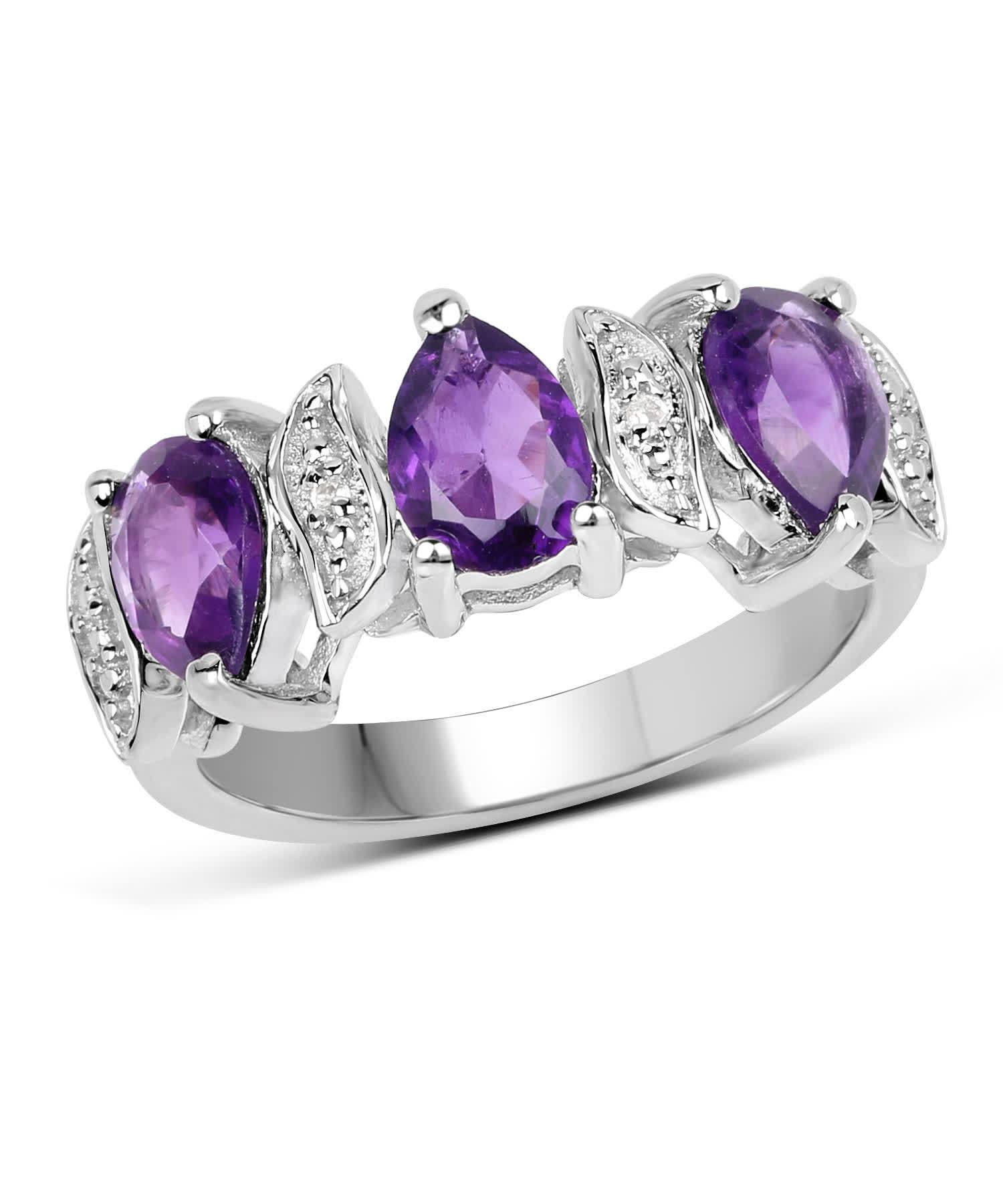 2.05 ctw Natural Amethyst and Topaz Rhodium Over 925 Sterling Silver Right Hand Ring
