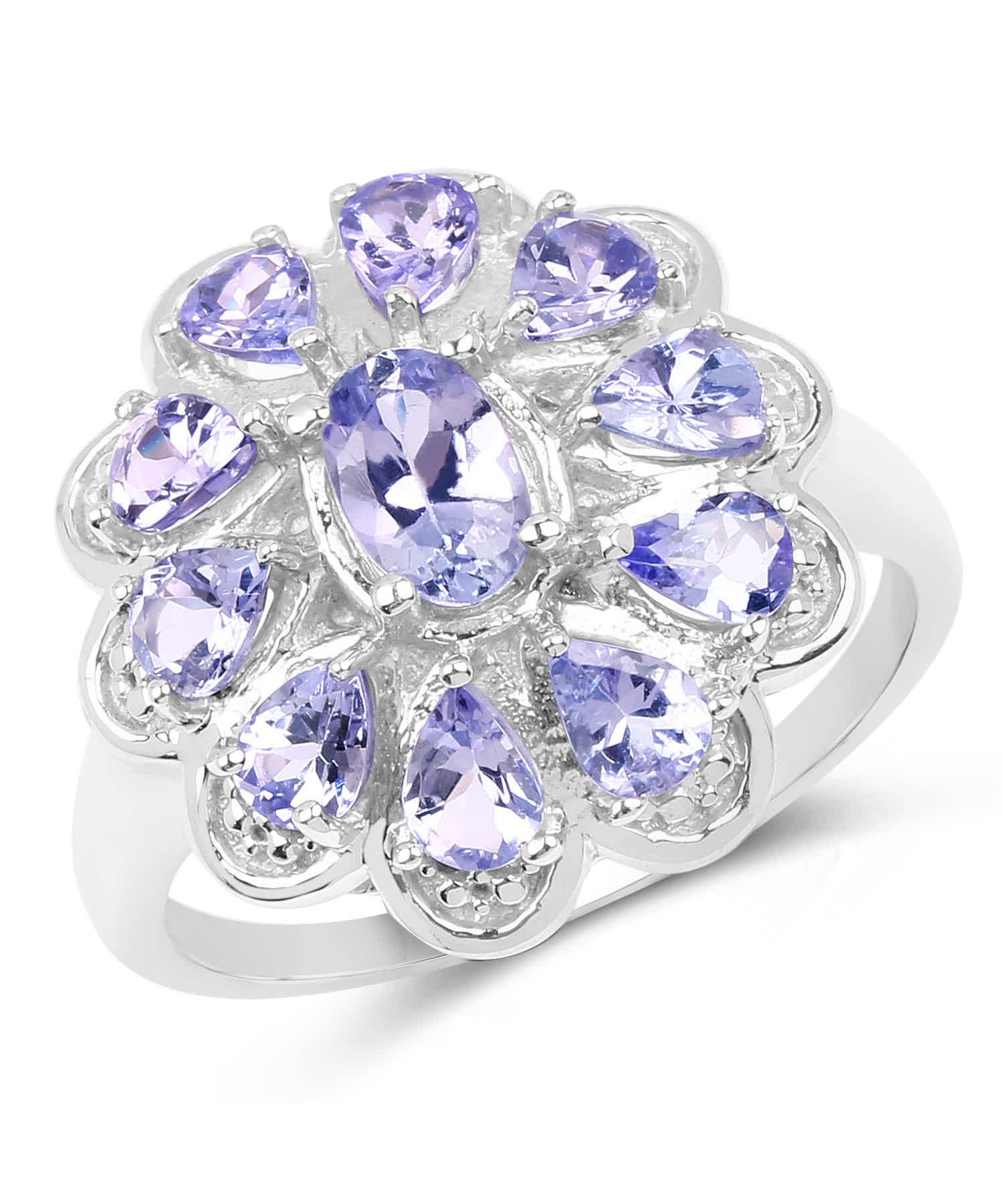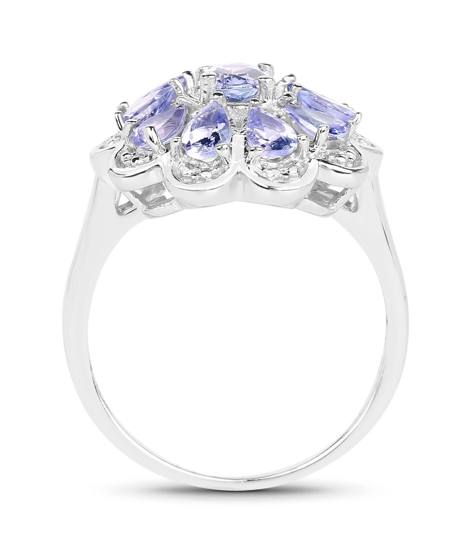 1.84 ctw Natural Tanzanite Rhodium Over 925 Sterling Silver Flower Right Hand Ring