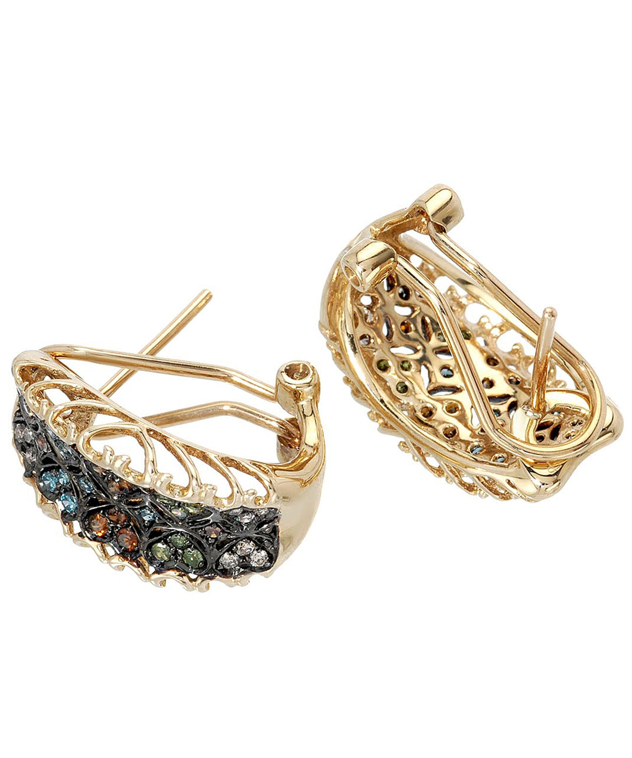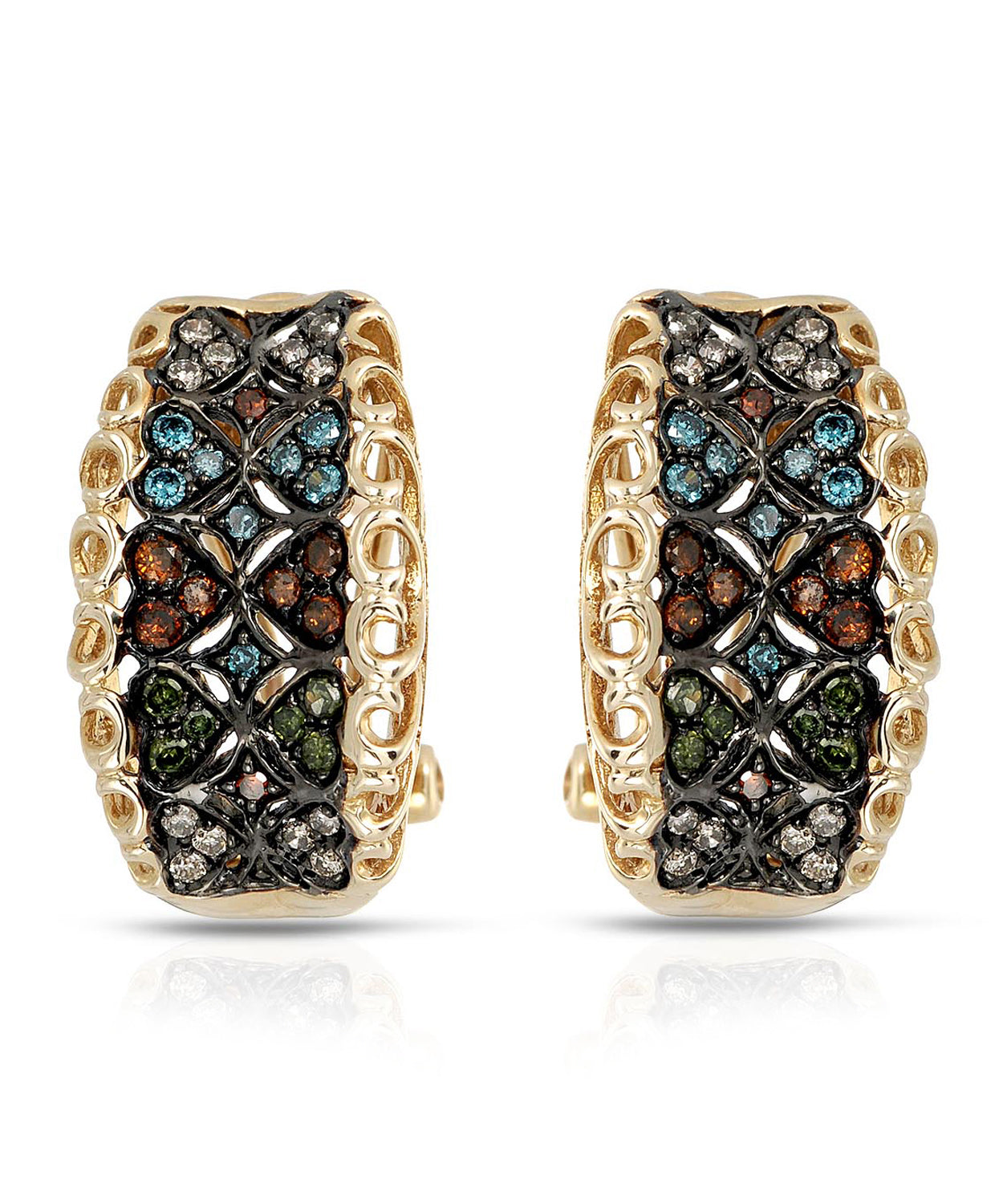 0.40 ctw Fancy Multicolor Diamonds and Champagne Diamond 14k Gold Victorian Style Earrings