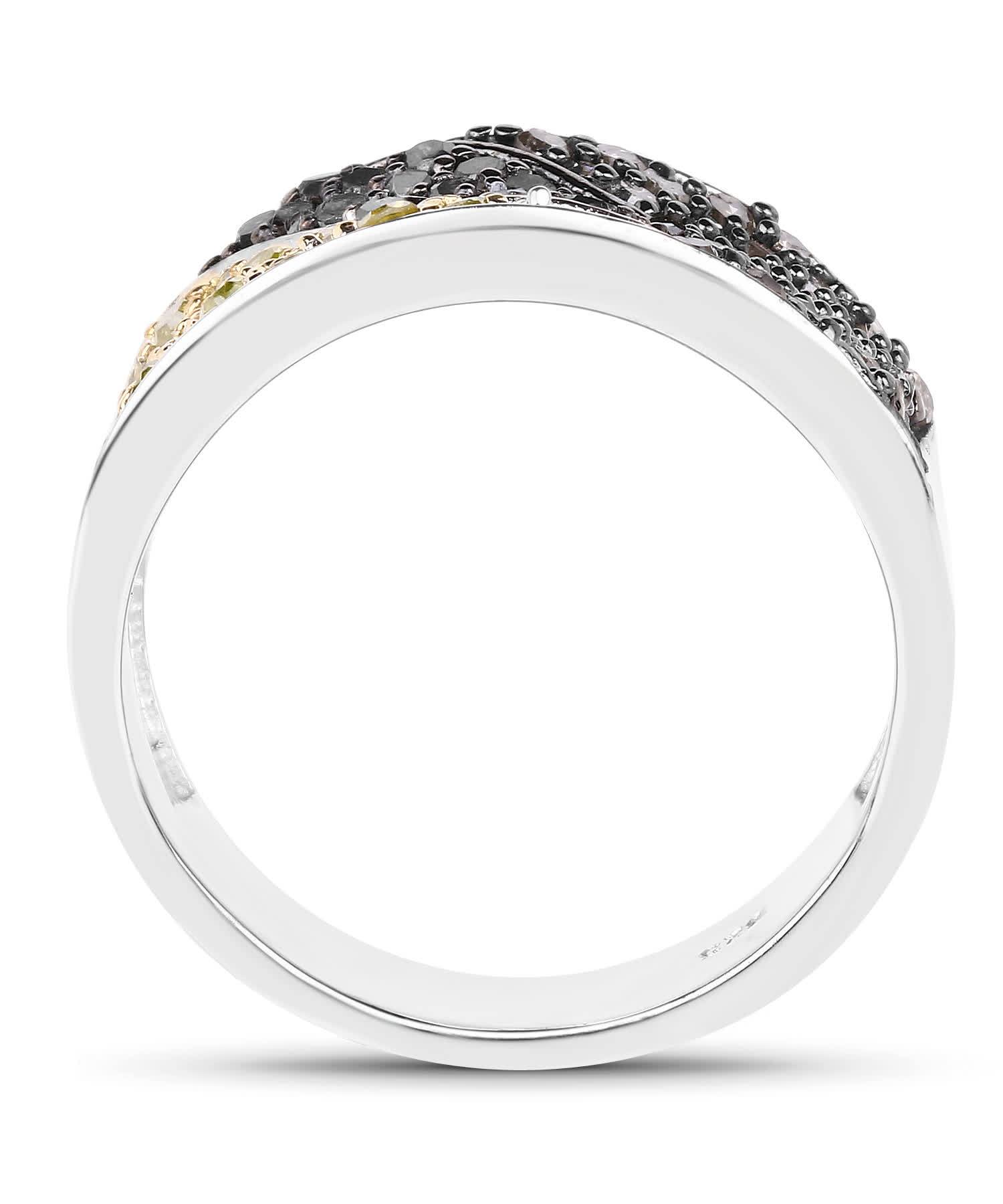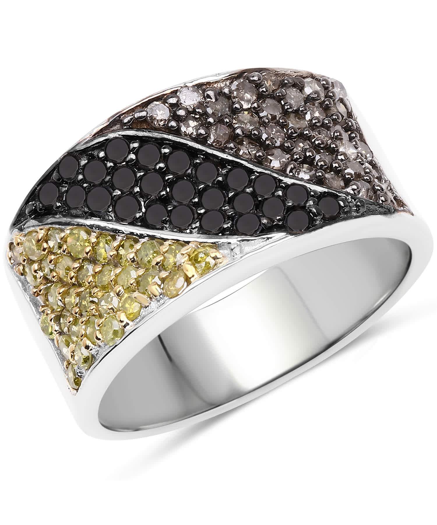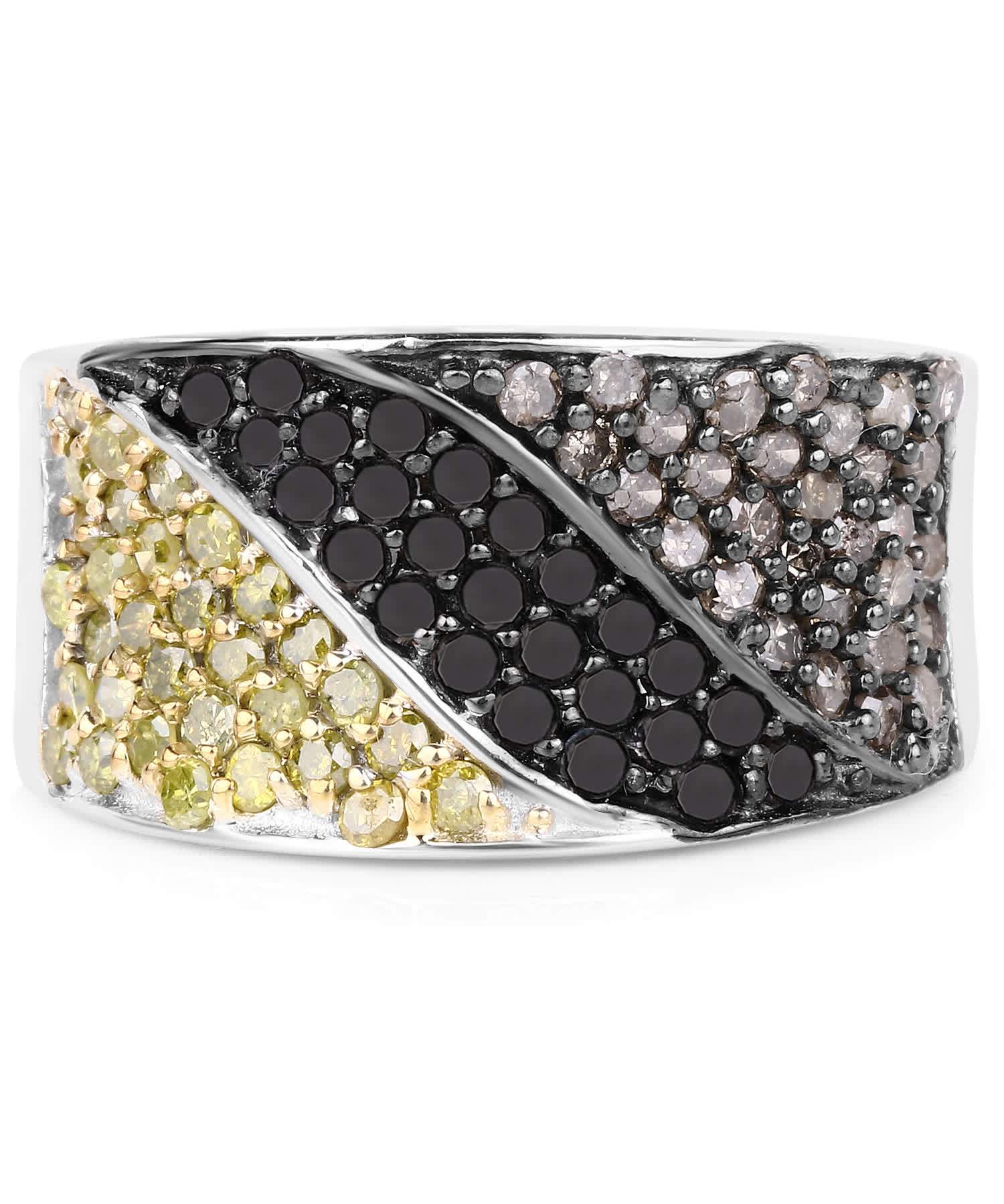 1.32 ctw Black and Champagne Diamond Rhodium Over 925 Sterling Silver Fashion Band