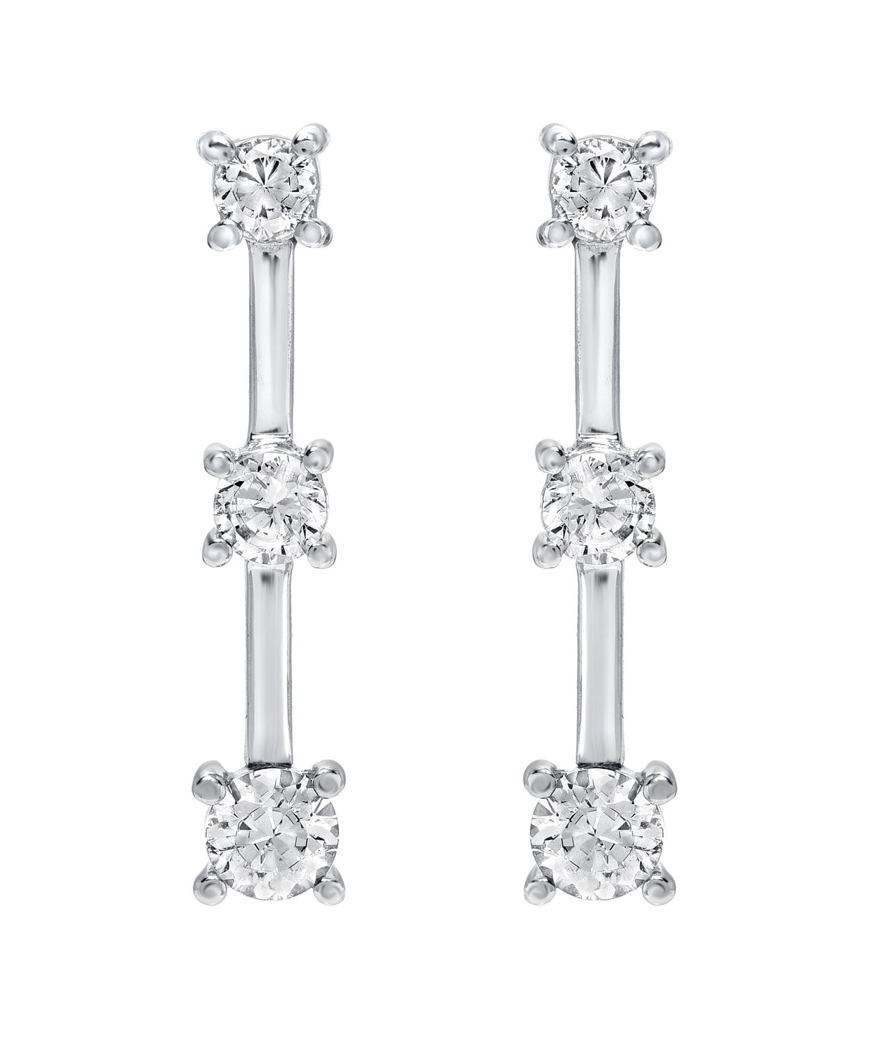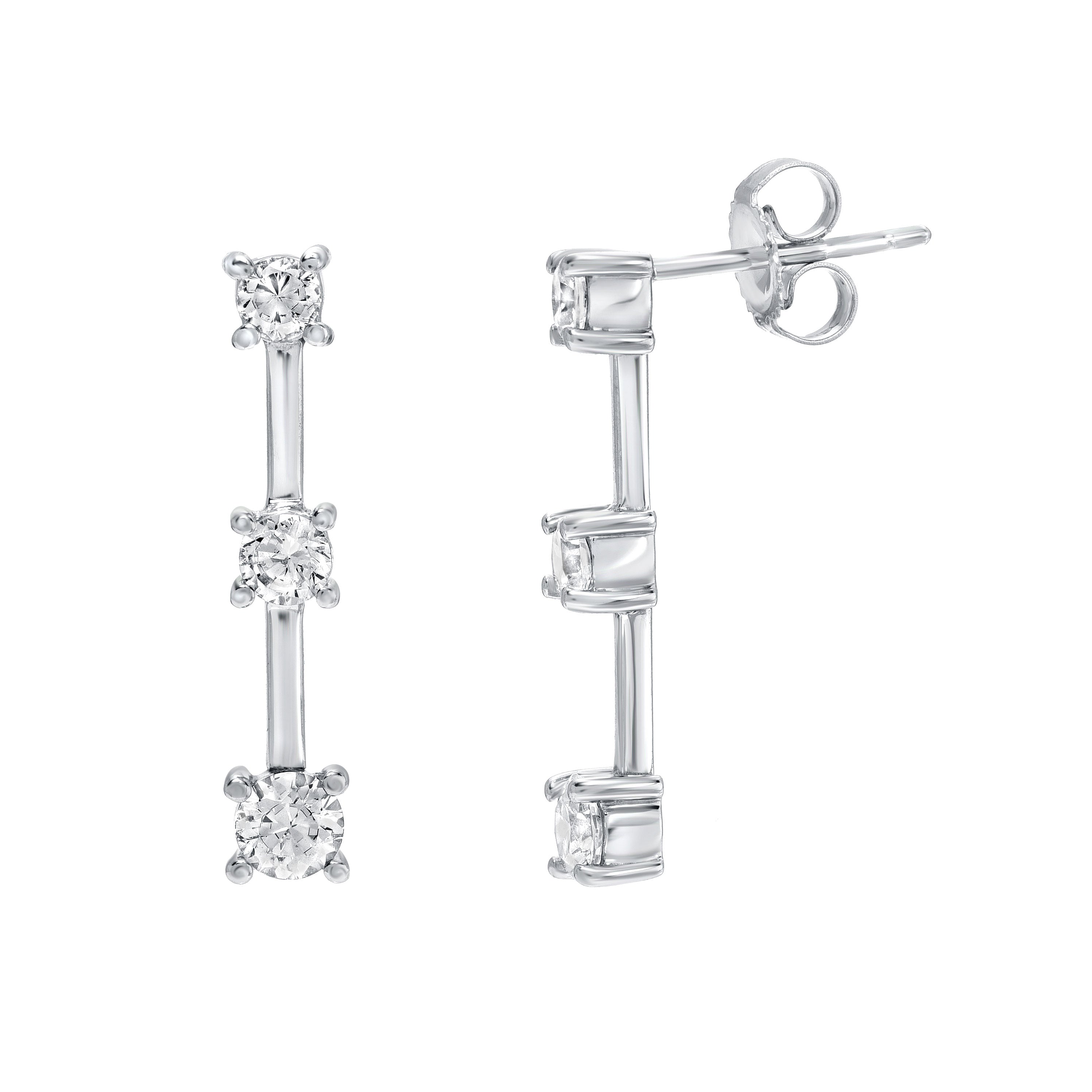 Brilliant Cut Cubic Zirconia 10k Gold Classic Three-Stone Earrings