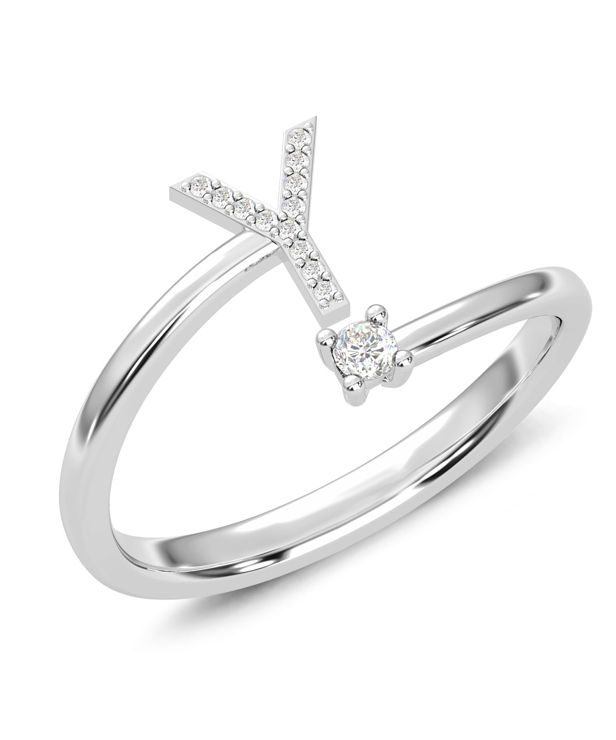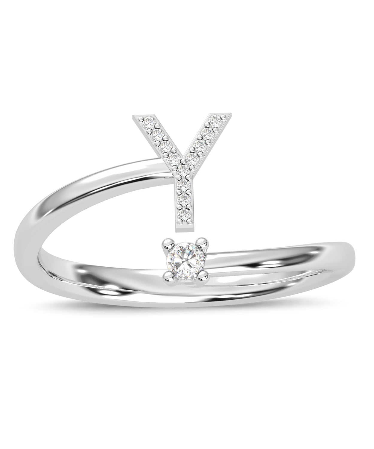ESEMCO Diamond 18k White Gold Letter Y Initial Open Ring