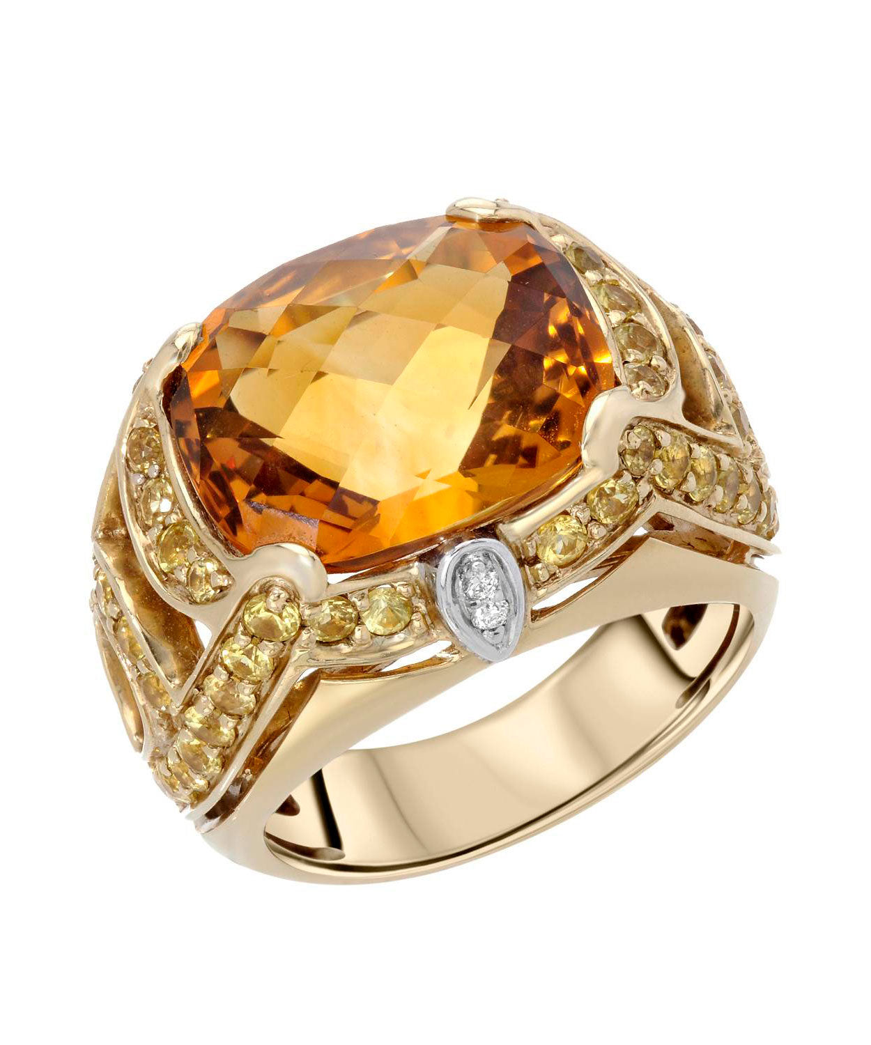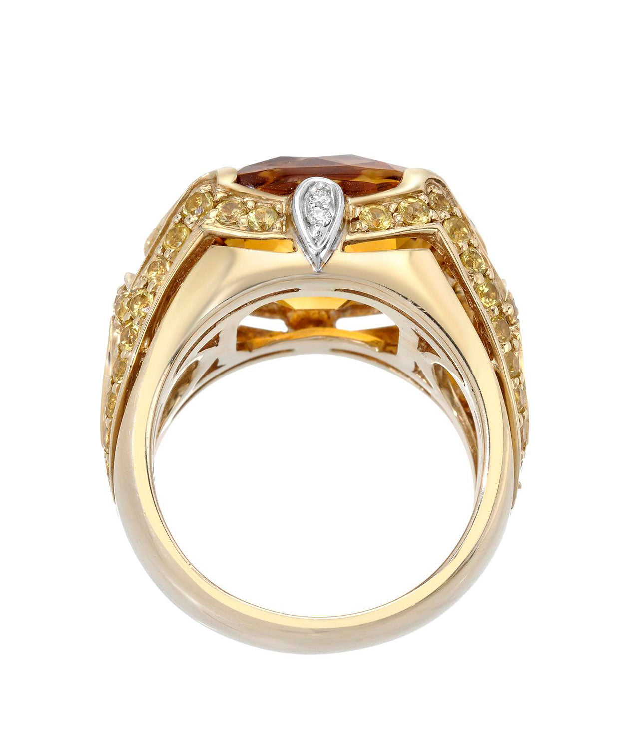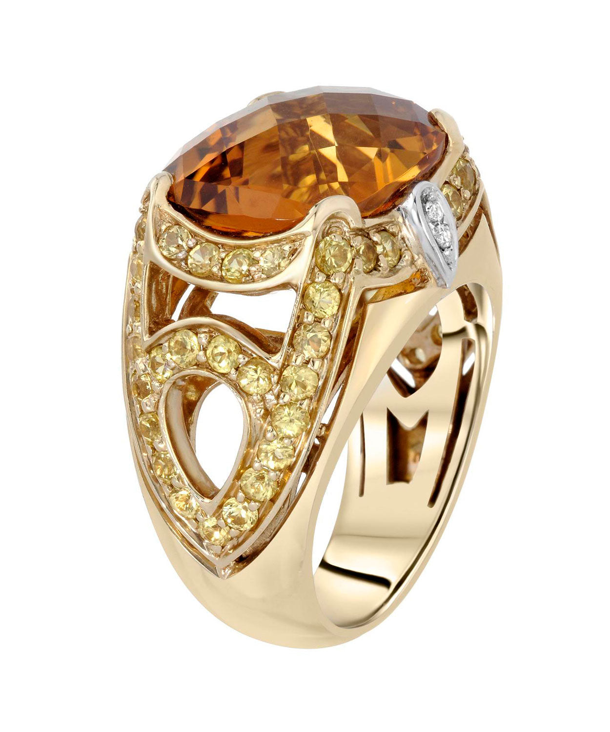 Home Glamour Toujours Collection 10.33 ctw Natural Honey Citrine, Yellow Sapphire and Diamond 14k Gold Cocktail Ring