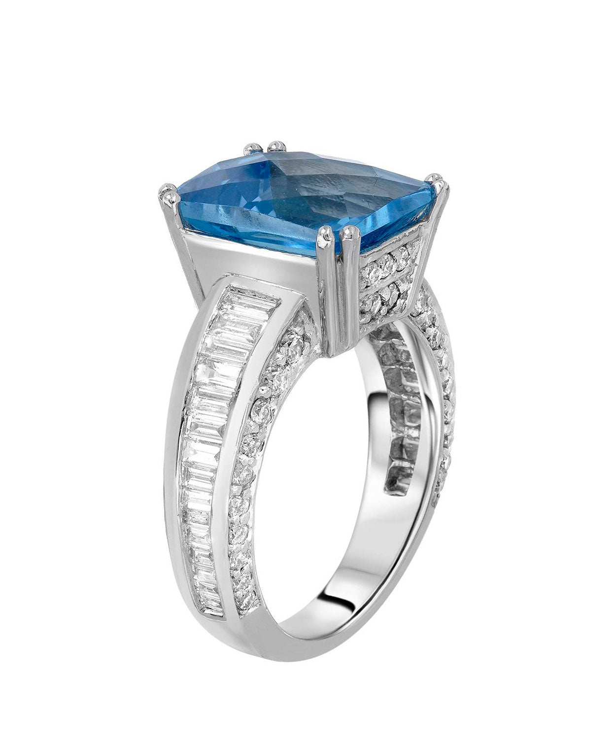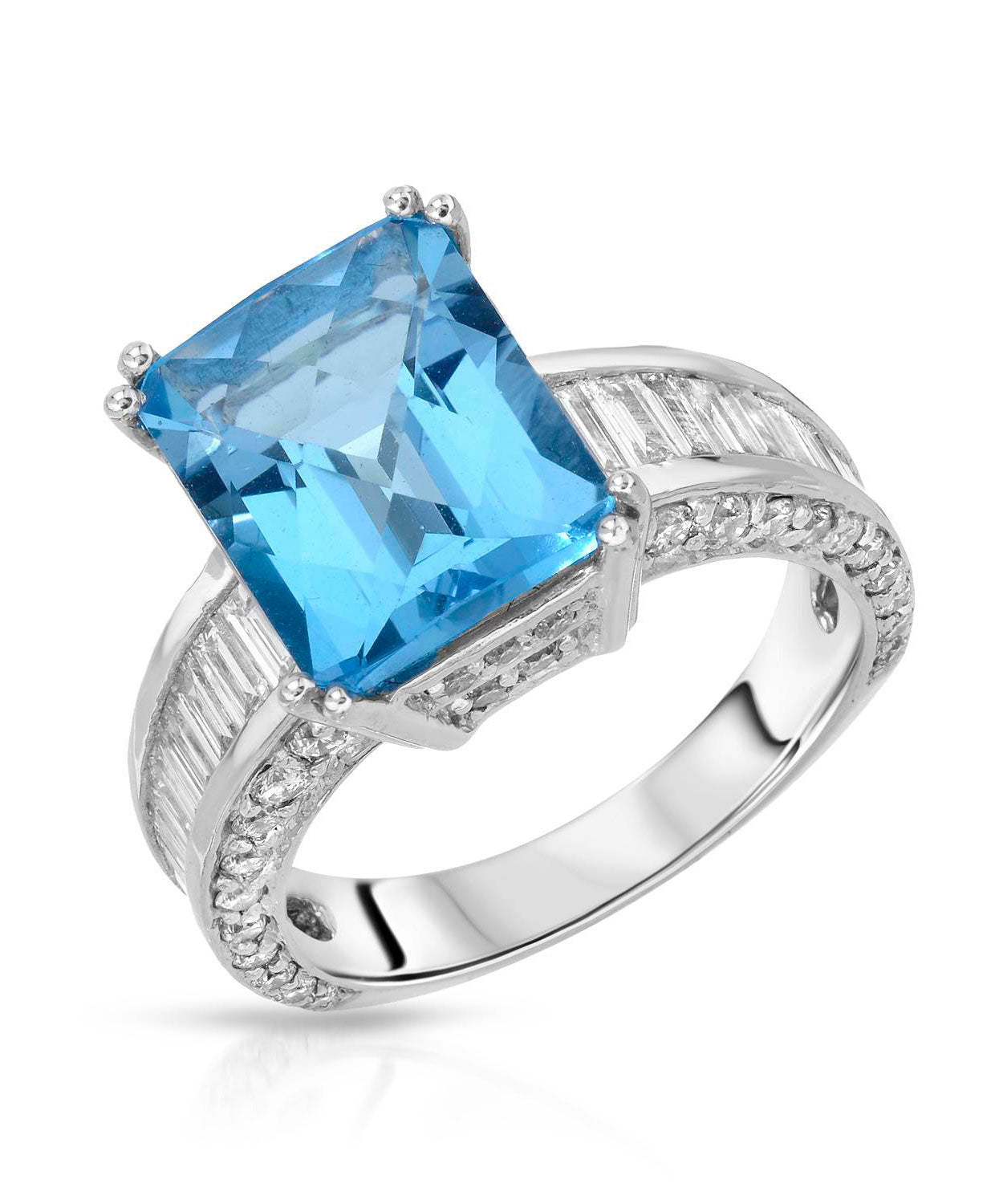 Glamour Toujours Collection 6.80 ctw Natural Swiss Blue Topaz and Diamond 14k Gold Cocktail Ring