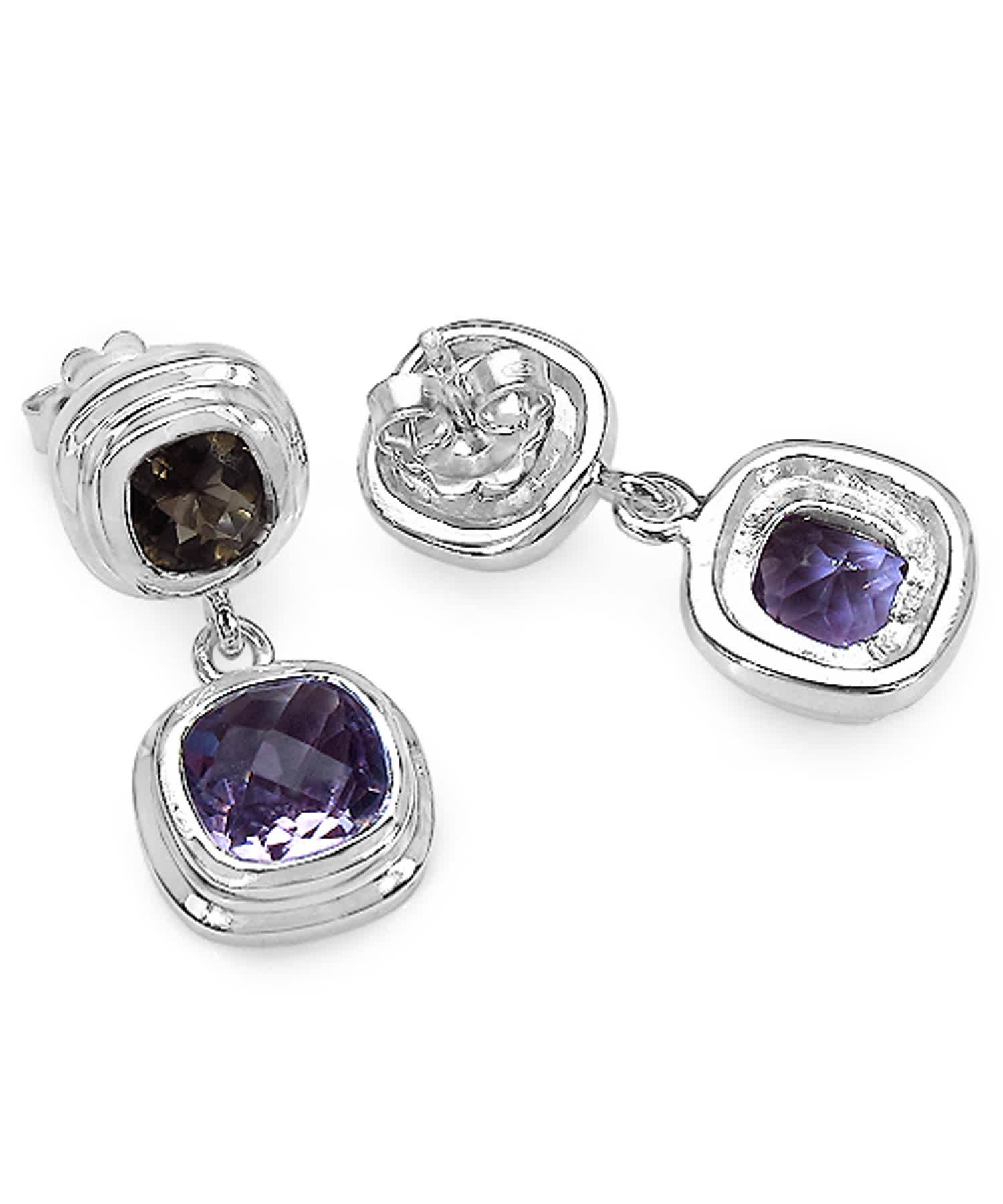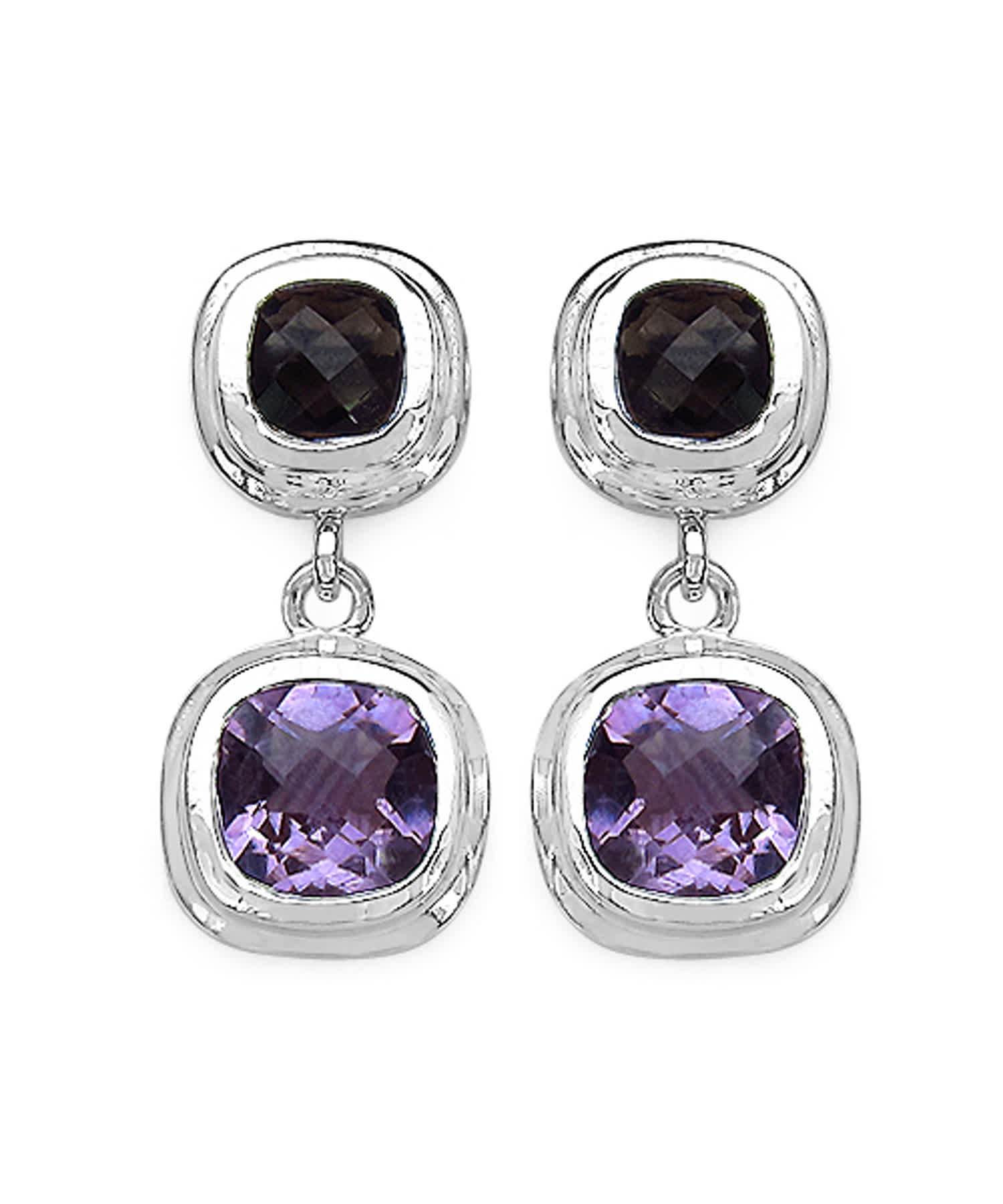 6.70 ctw Natural Amethyst and Smoky Quartz Rhodium Over 925 Sterling Silver Dangle Earrings