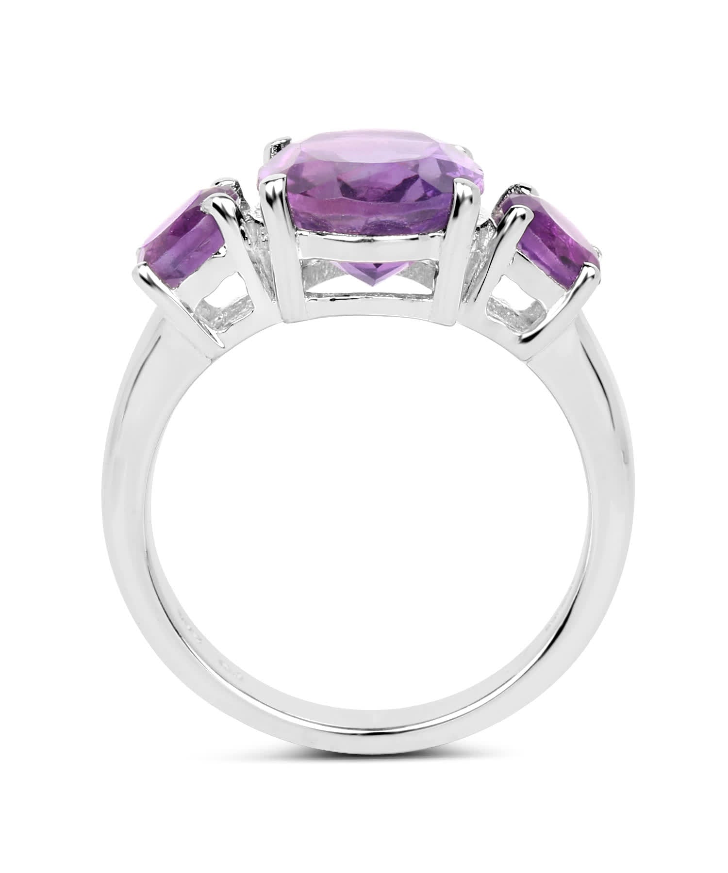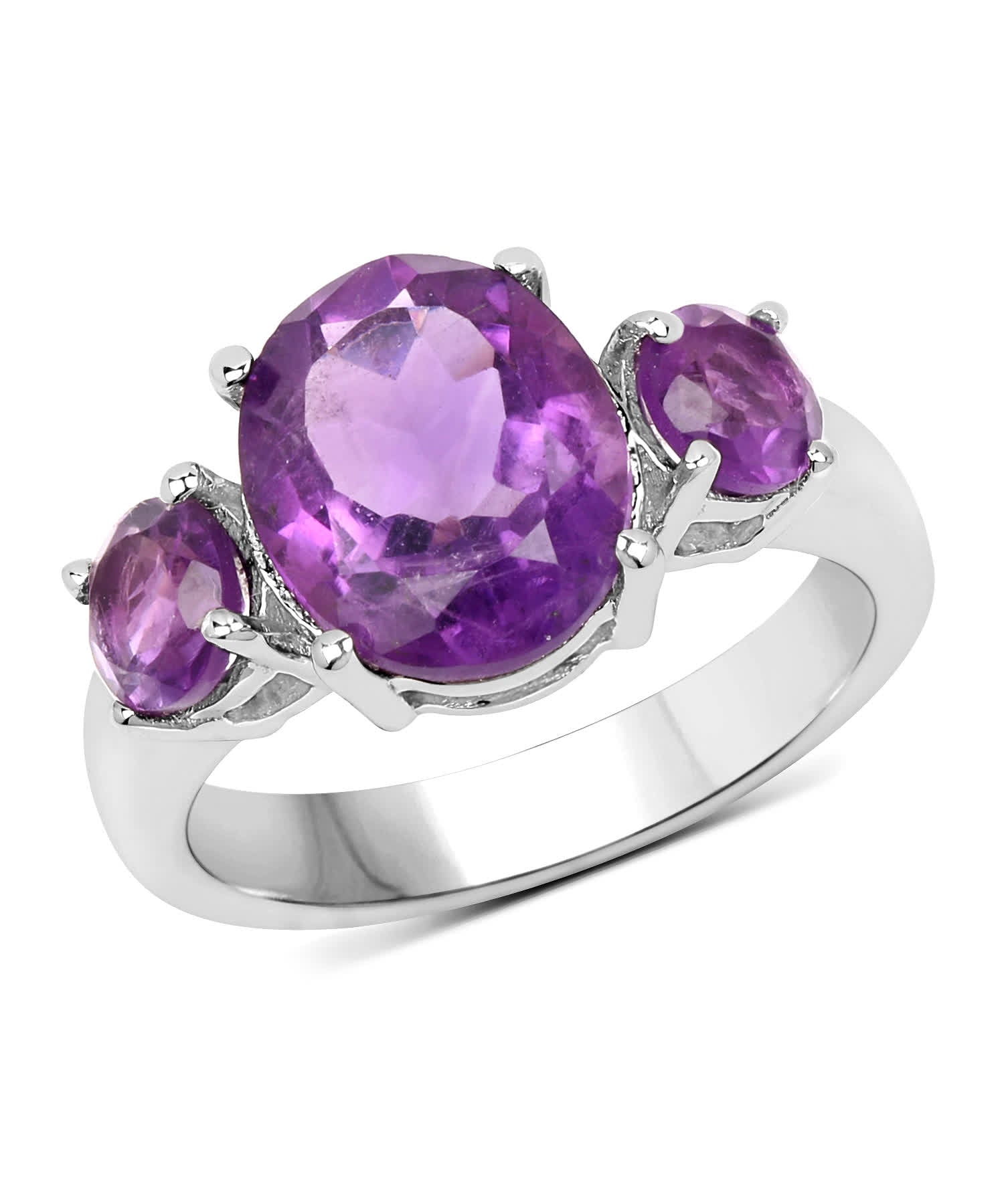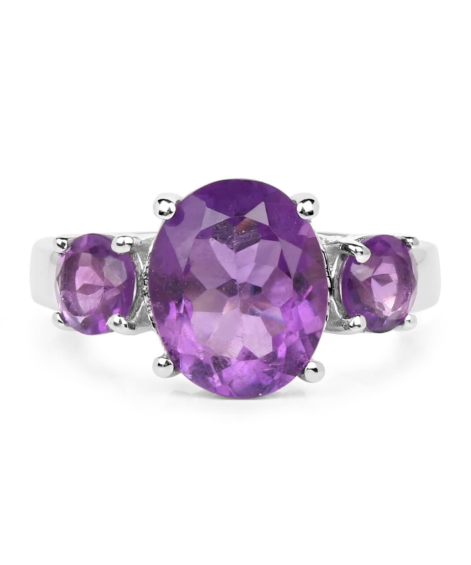 4.10 ctw Natural Amethyst Rhodium Over 925 Sterling Silver Classic Three-Stone Ring