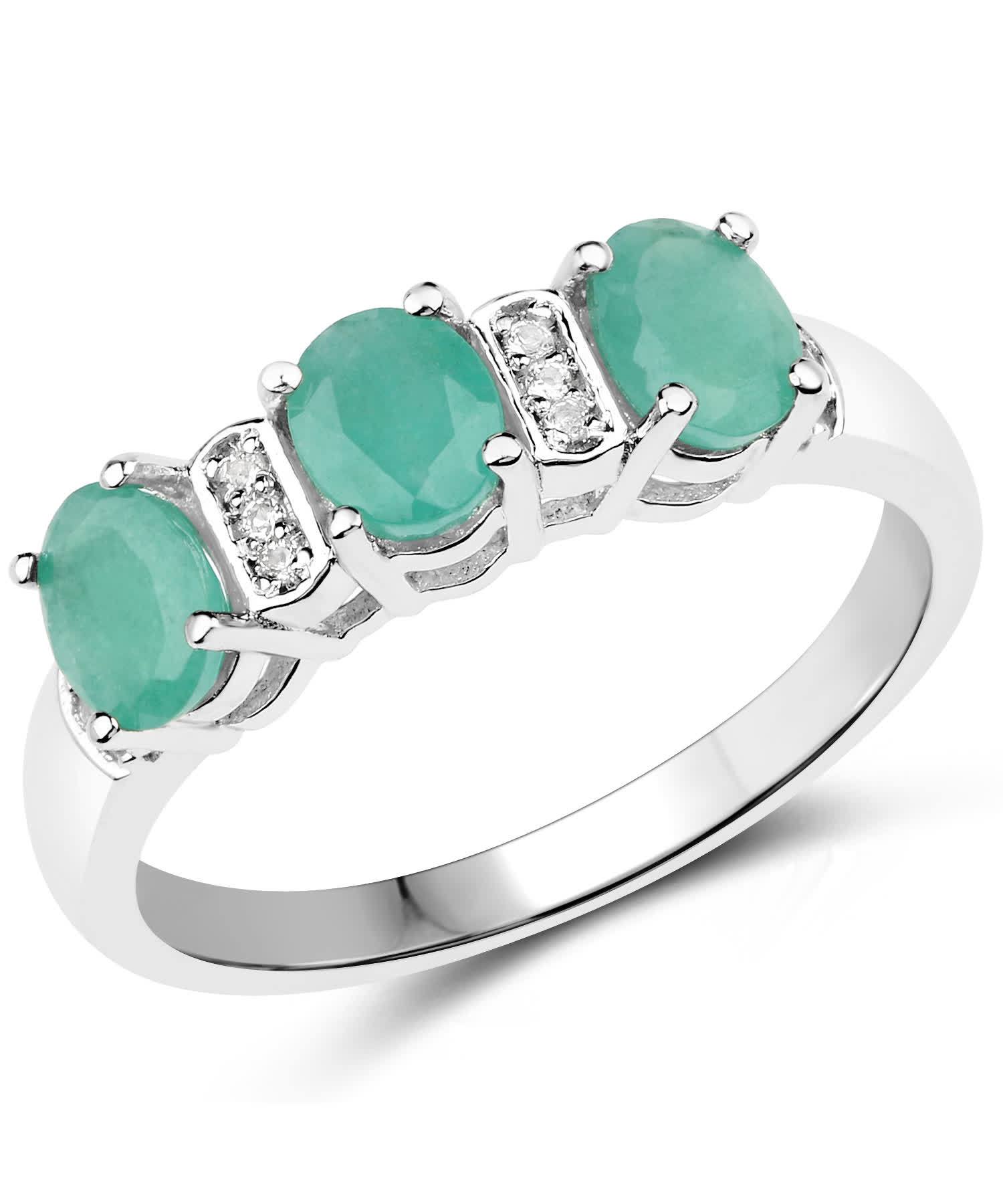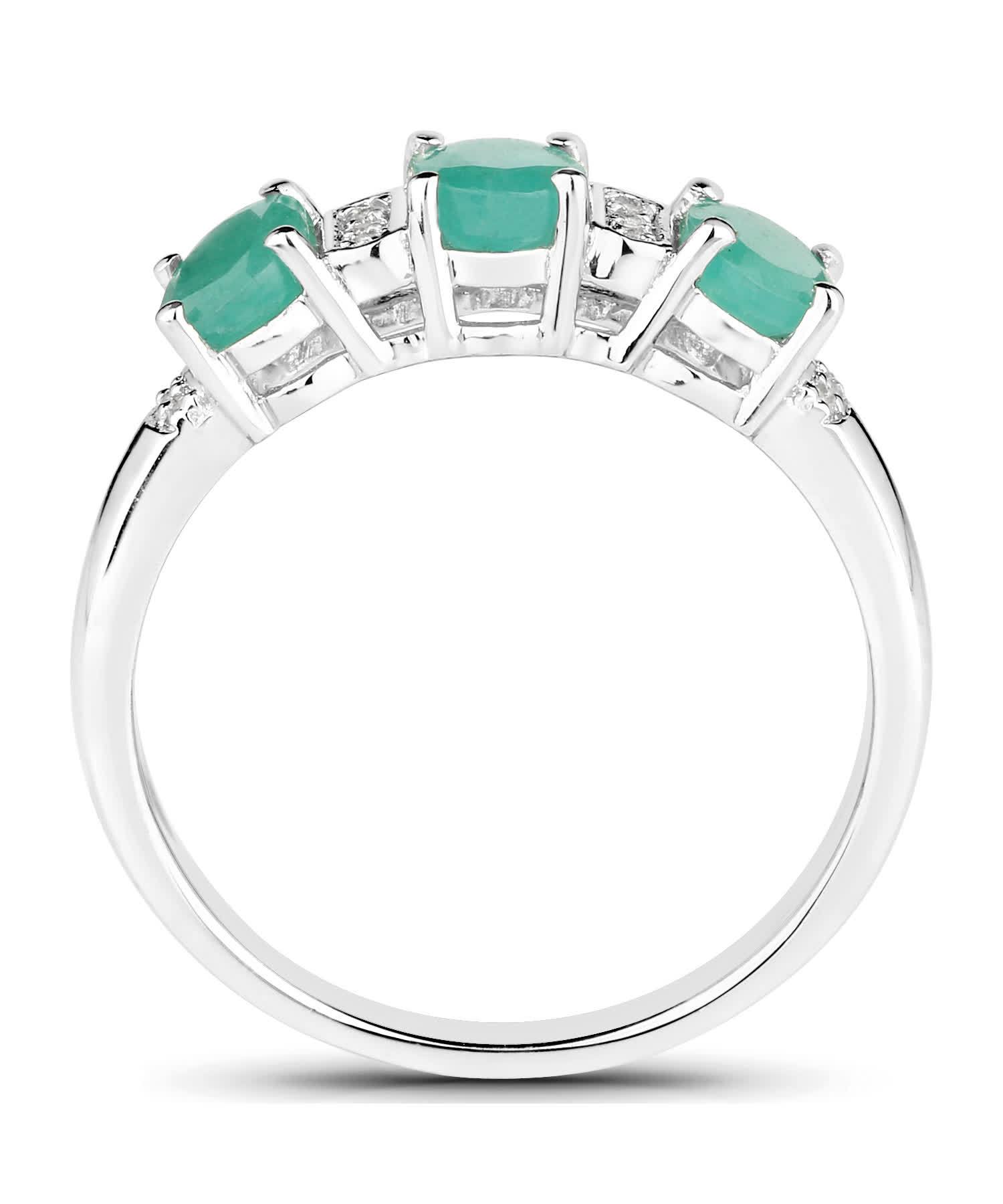 0.90 ctw Natural Emerald and Topaz Rhodium Over 925 Sterling Silver Three-Stone Ring