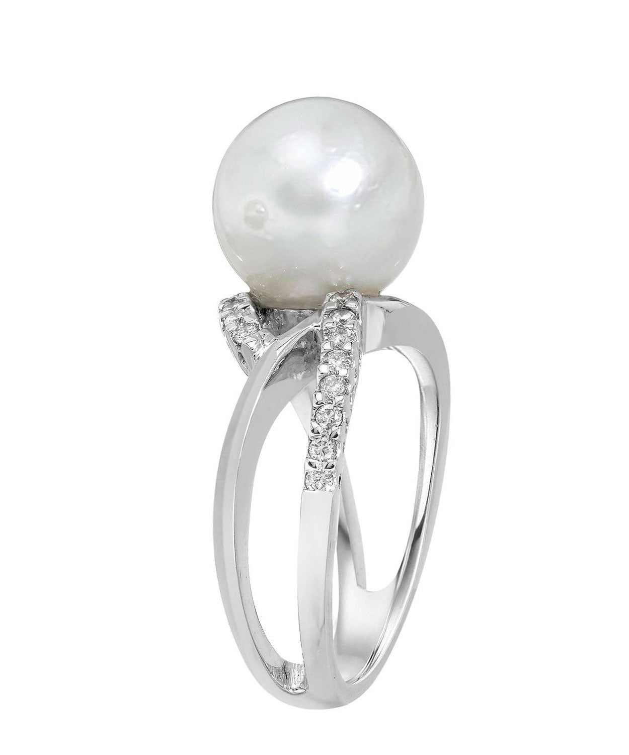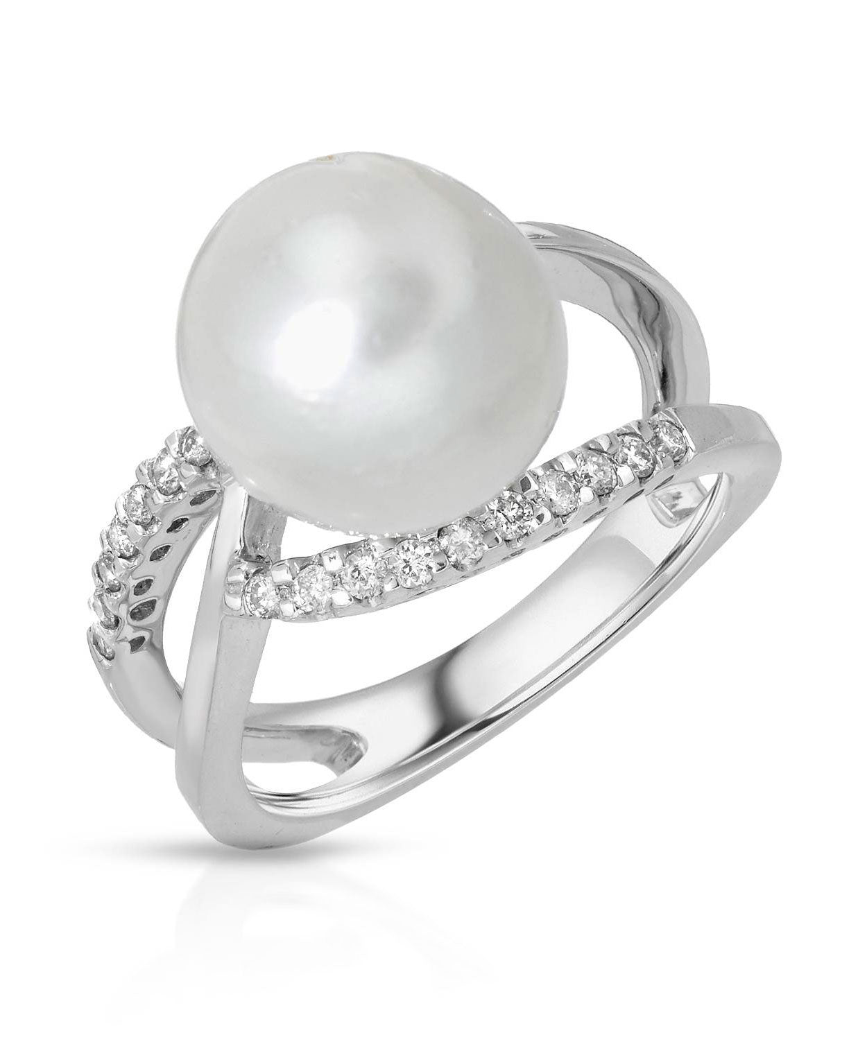11.5 mm Natural Freshwater Pearl and Diamond 18k White Gold Ring