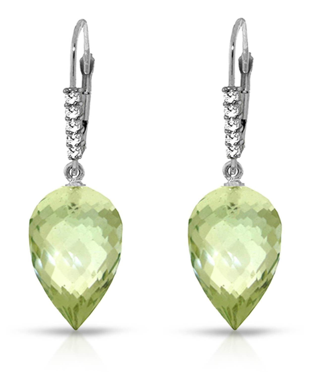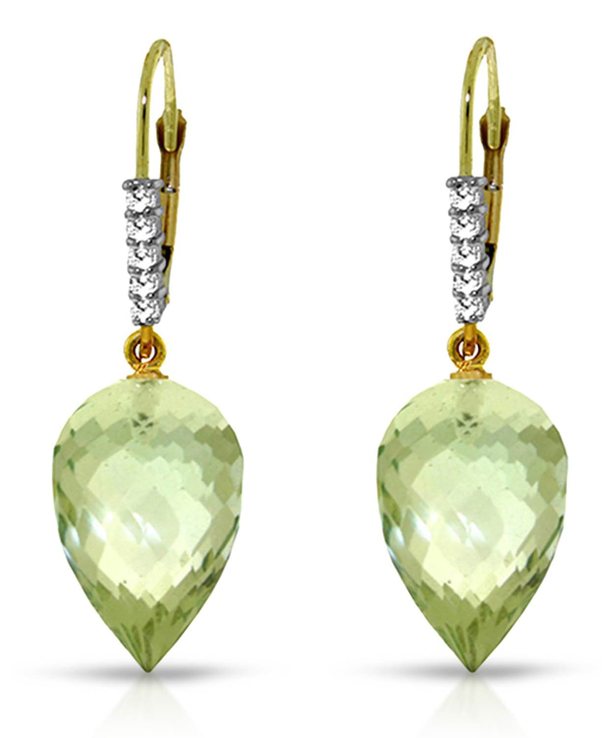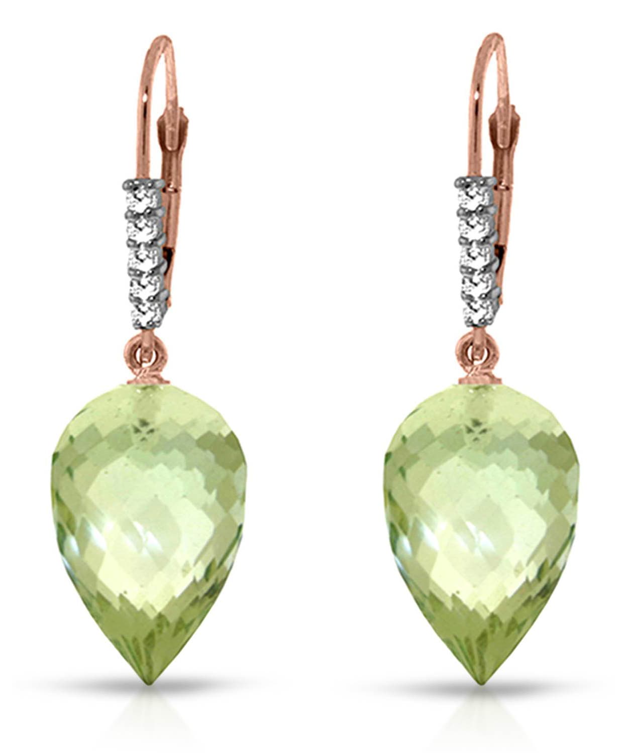 19.18 ctw Natural Green Amethyst and Diamond 14k Gold Dangle Earrings