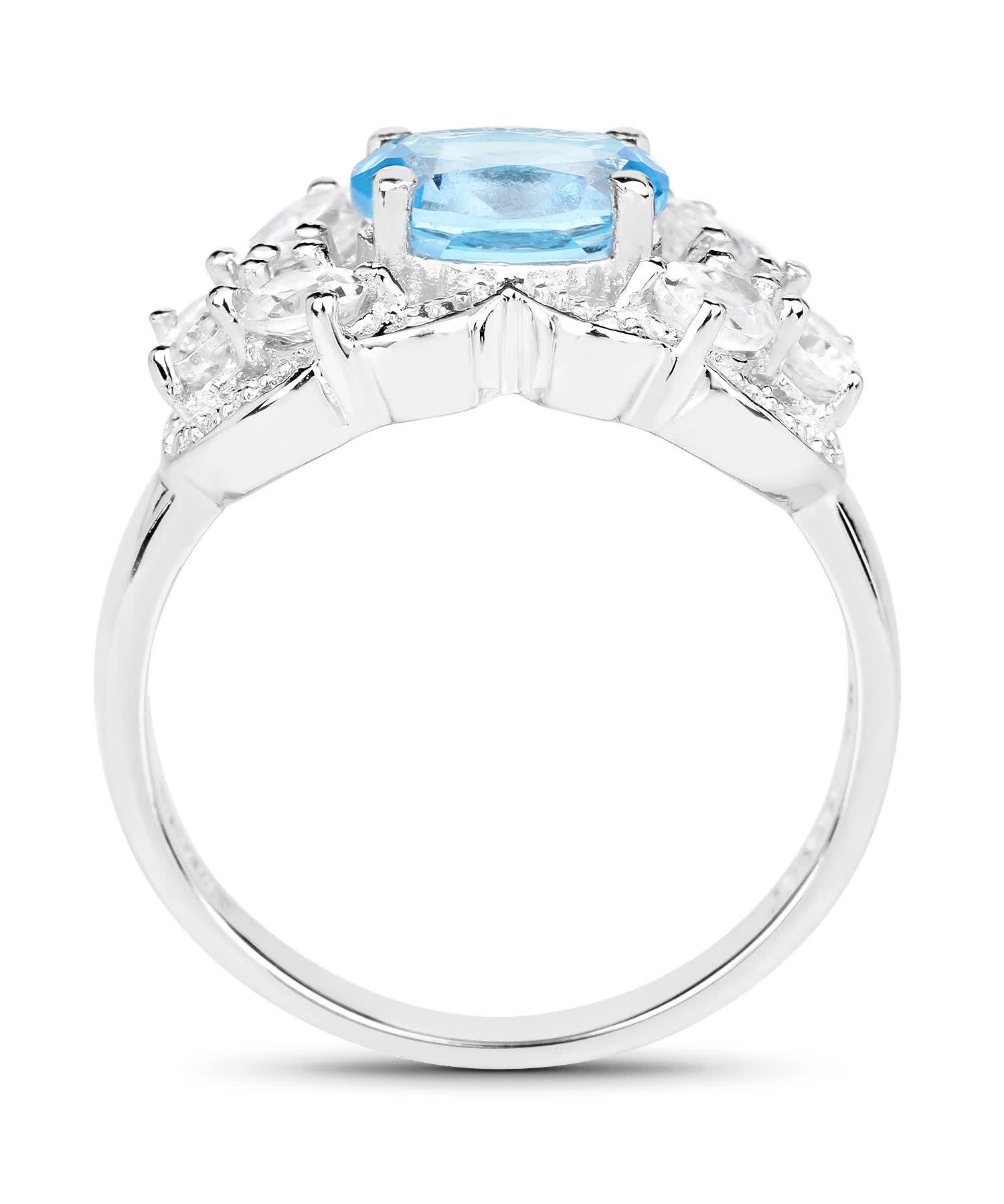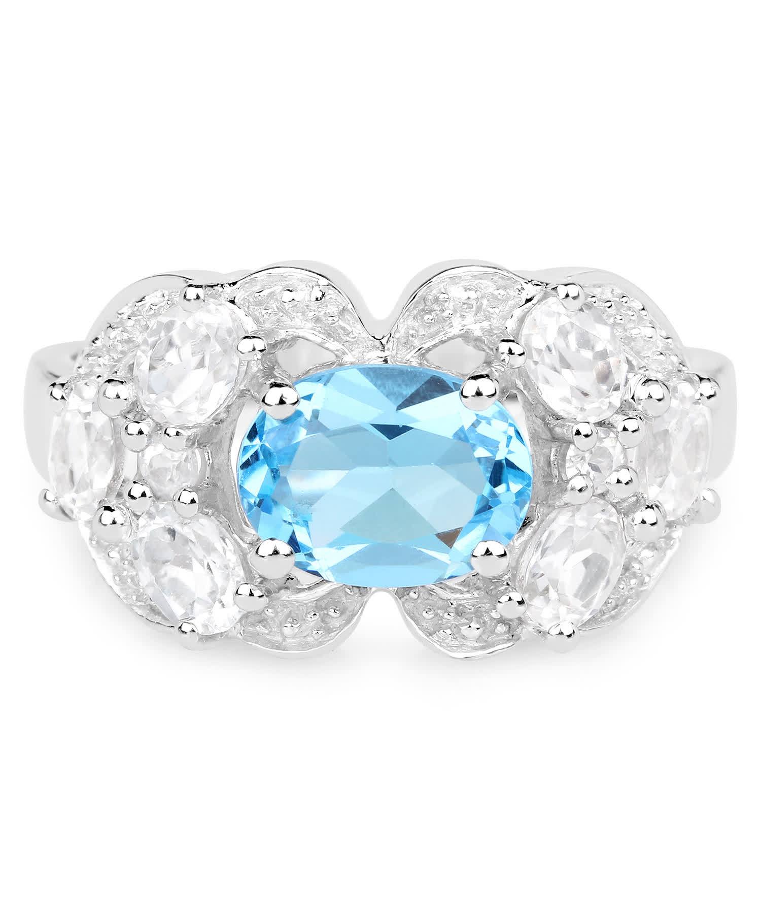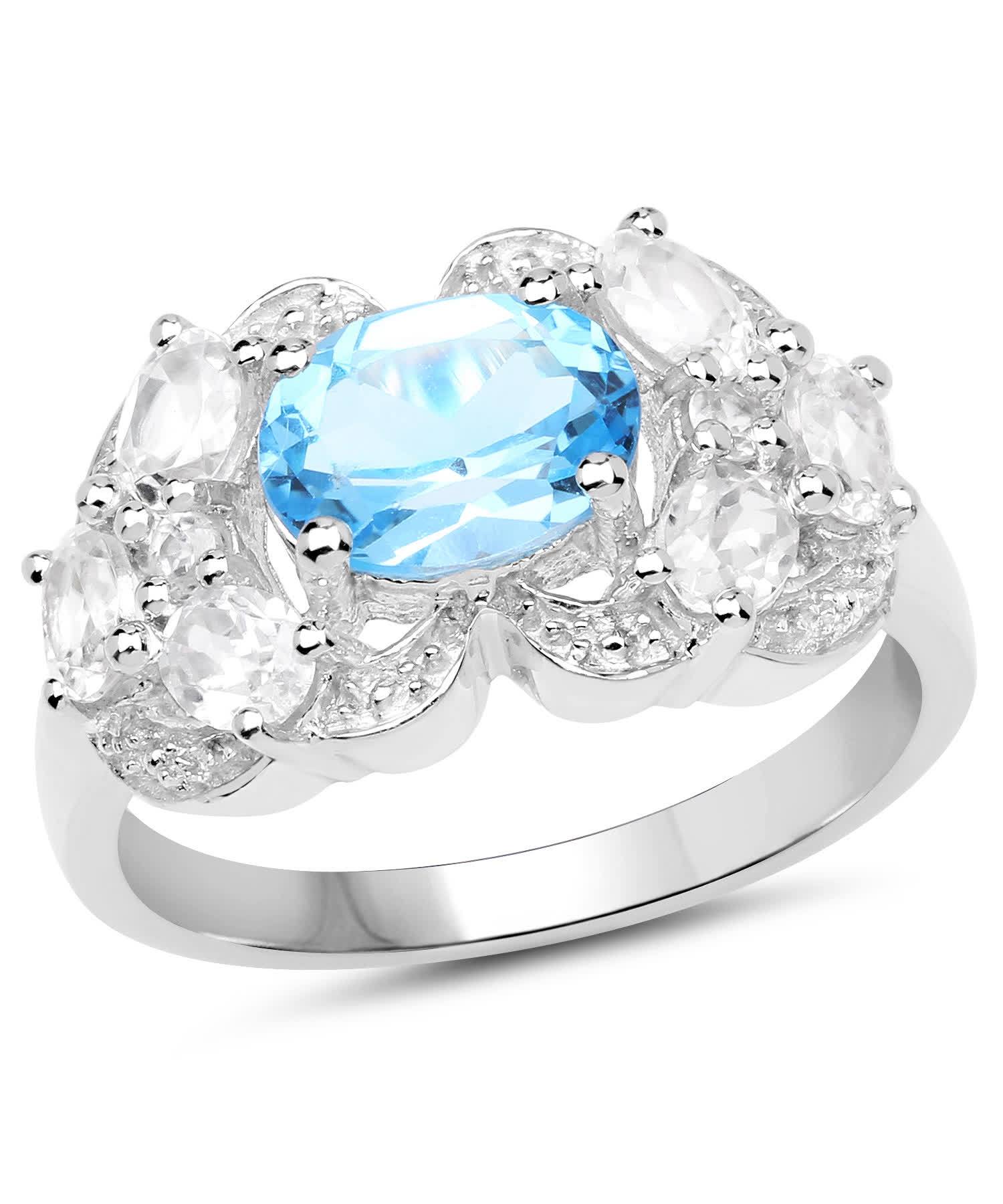 3.20 ctw Natural Sky Blue Topaz and Zircon Rhodium Over 925 Sterling Silver Ring