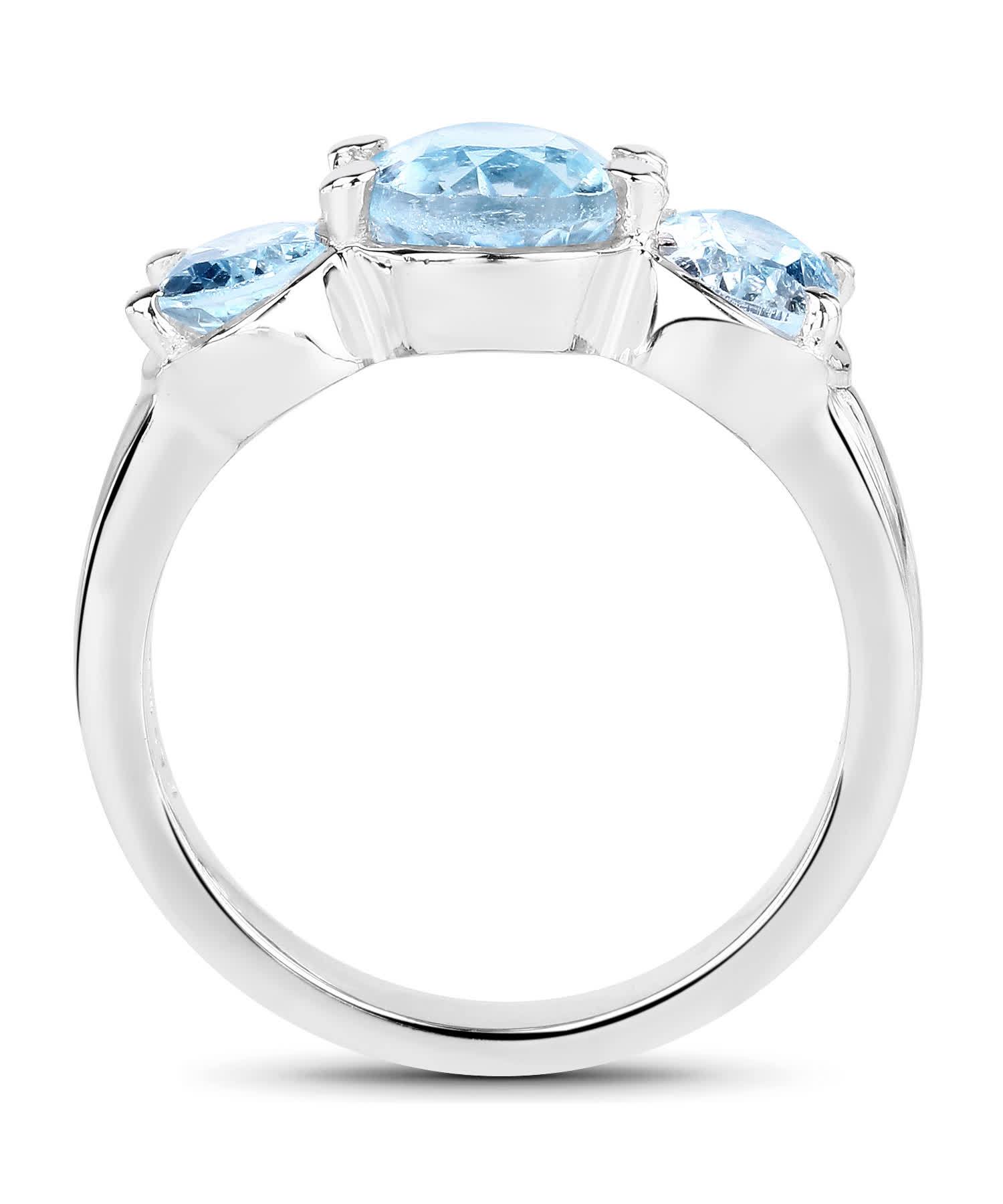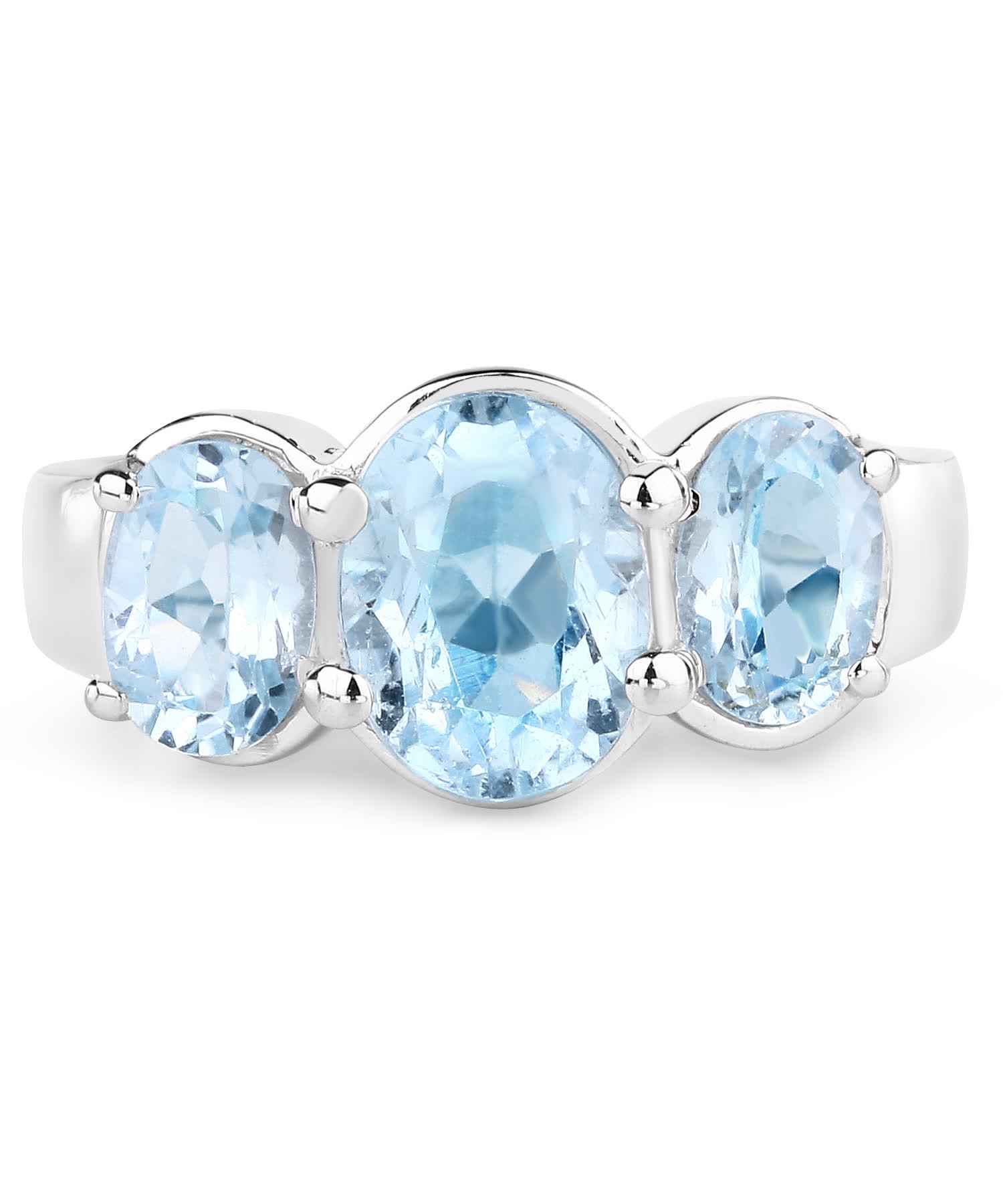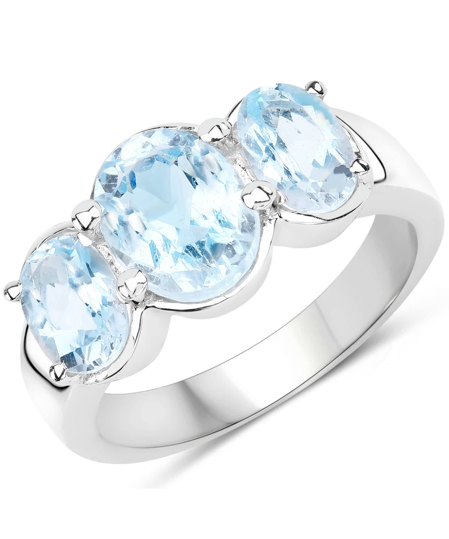 4.40 ctw Natural Sky Blue Topaz Rhodium Over 925 Sterling Silver Classic Three-Stone Ring