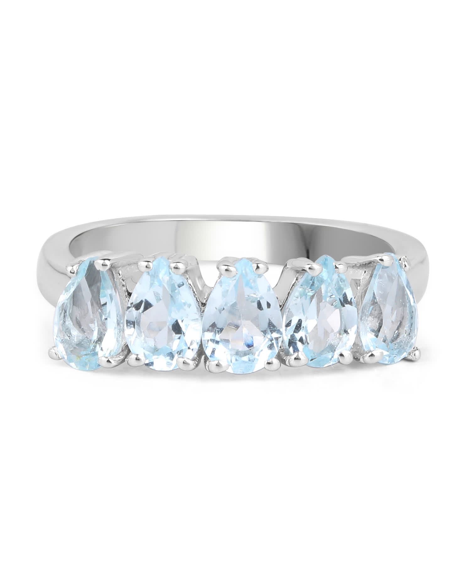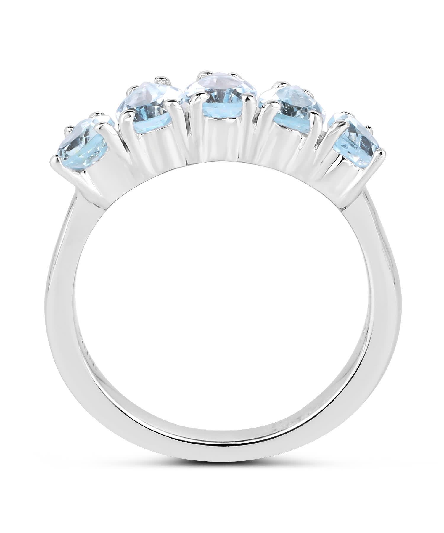 2.65 ctw Natural Sky Blue Topaz Rhodium Over 925 Sterling Silver Fashion Band
