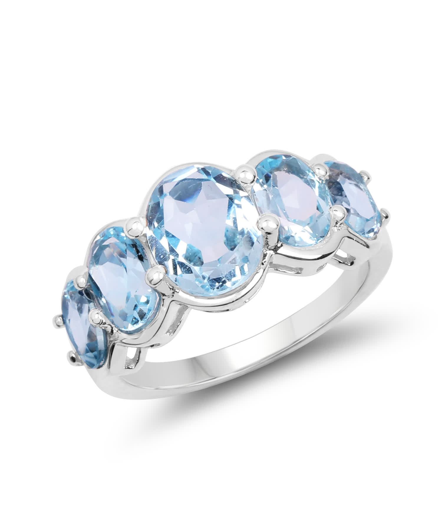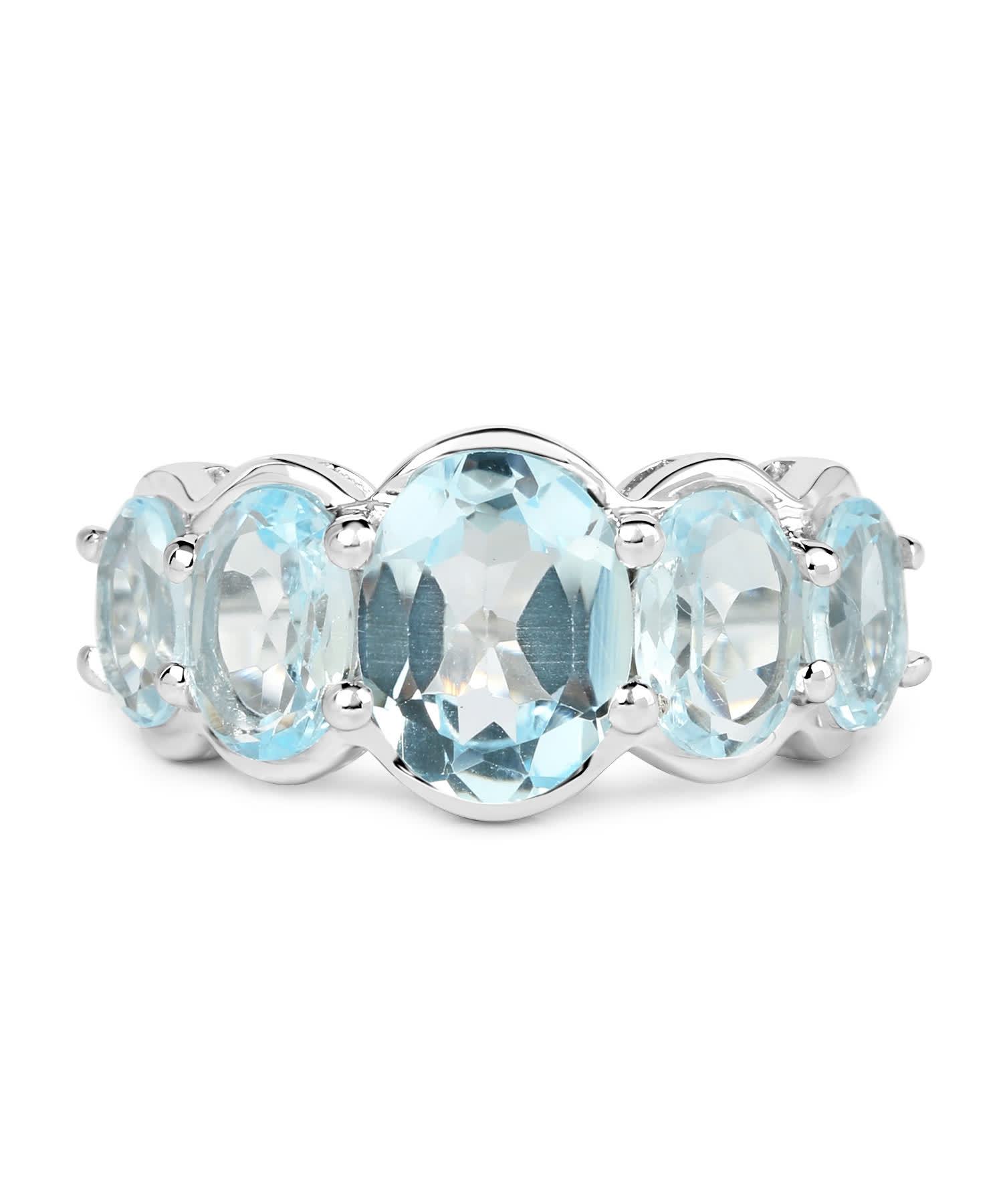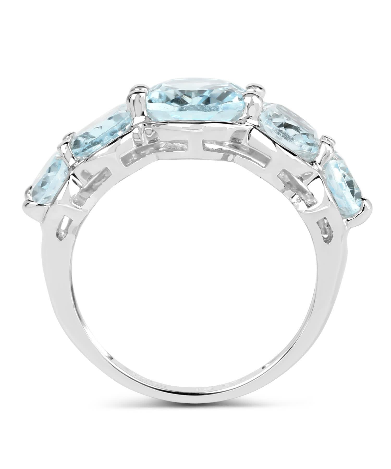 5.42 ctw Natural Sky Blue Topaz Rhodium Over 925 Sterling Silver Right Hand Ring