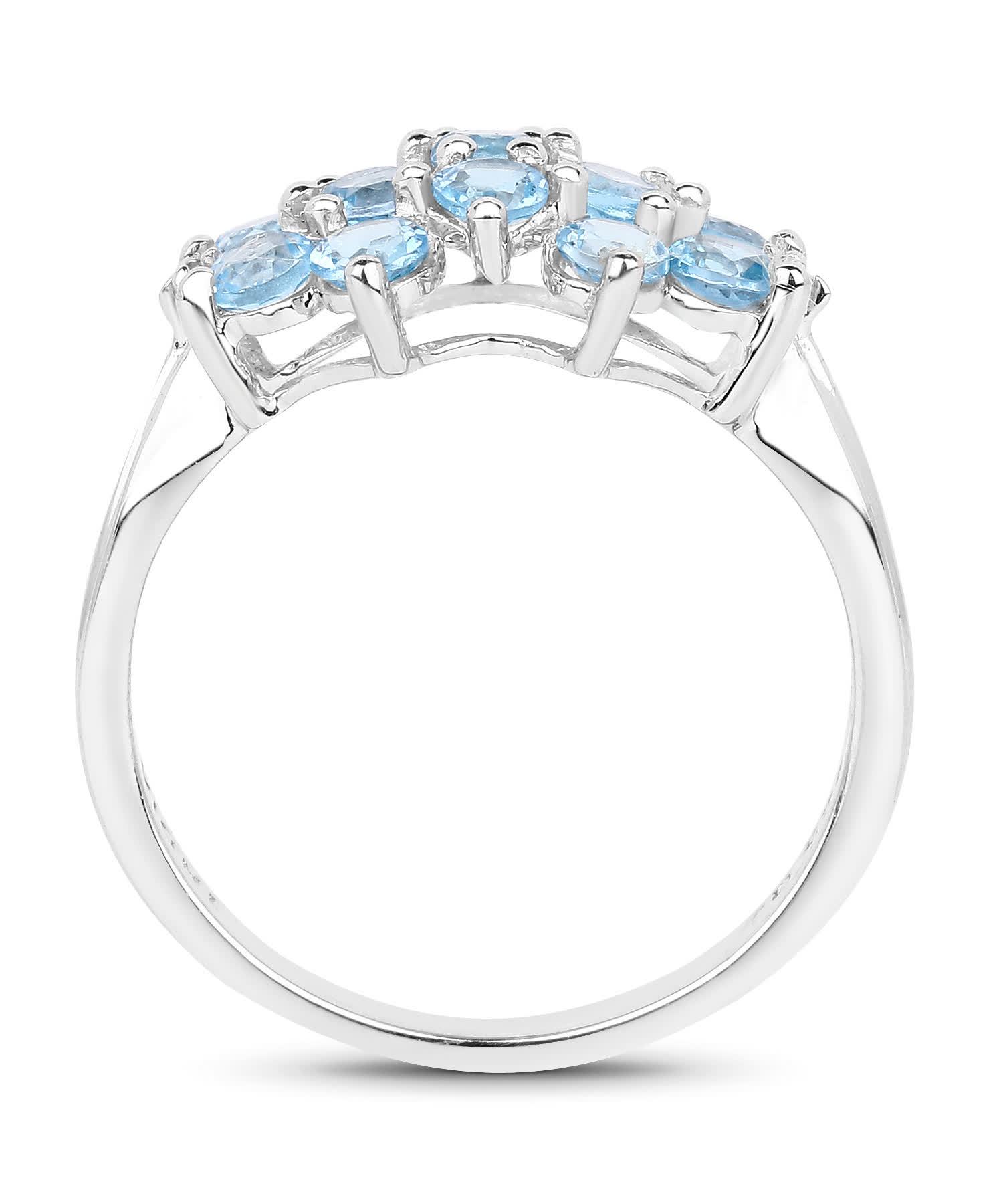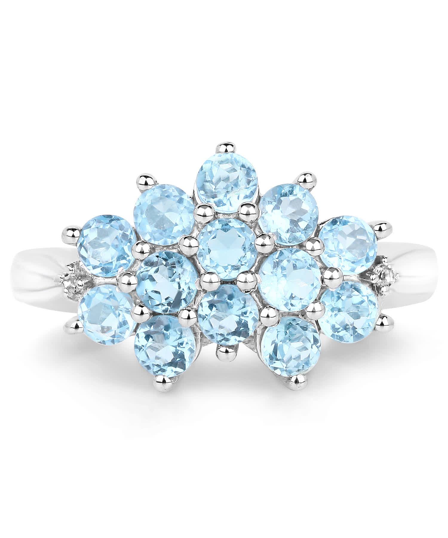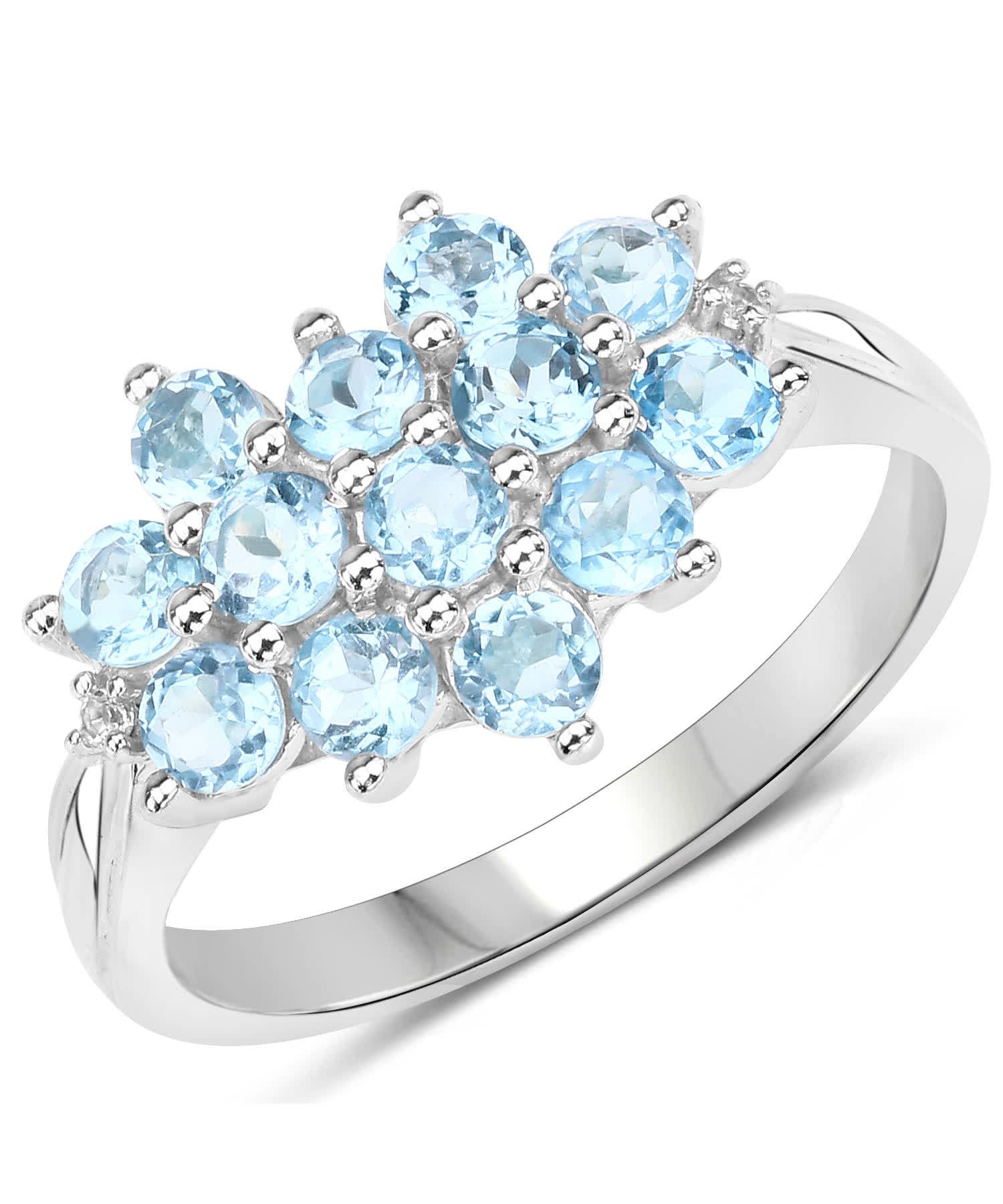 1.32 ctw Natural Swiss Blue Topaz Rhodium Over 925 Sterling Silver Cluster Ring